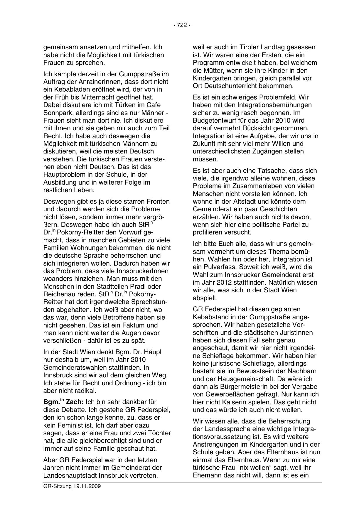 Dr.in Pokorny-Reitter den Vorwurf gemacht, dass in manchen Gebieten zu viele