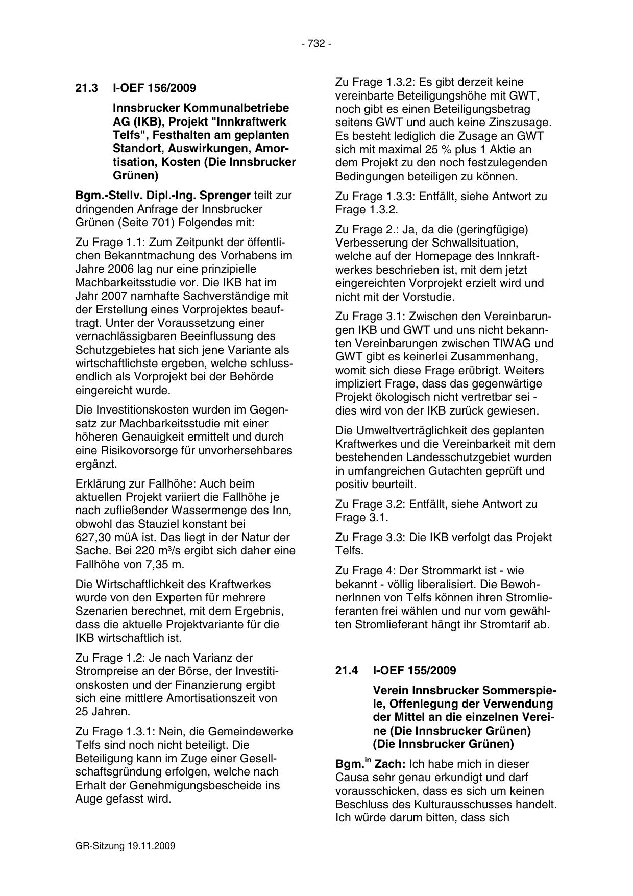 Zu Frage 3.1: Zwischen den Vereinbarungen IKB und GWT und uns nicht bekannten Vereinbarungen zwischen TIWAG und