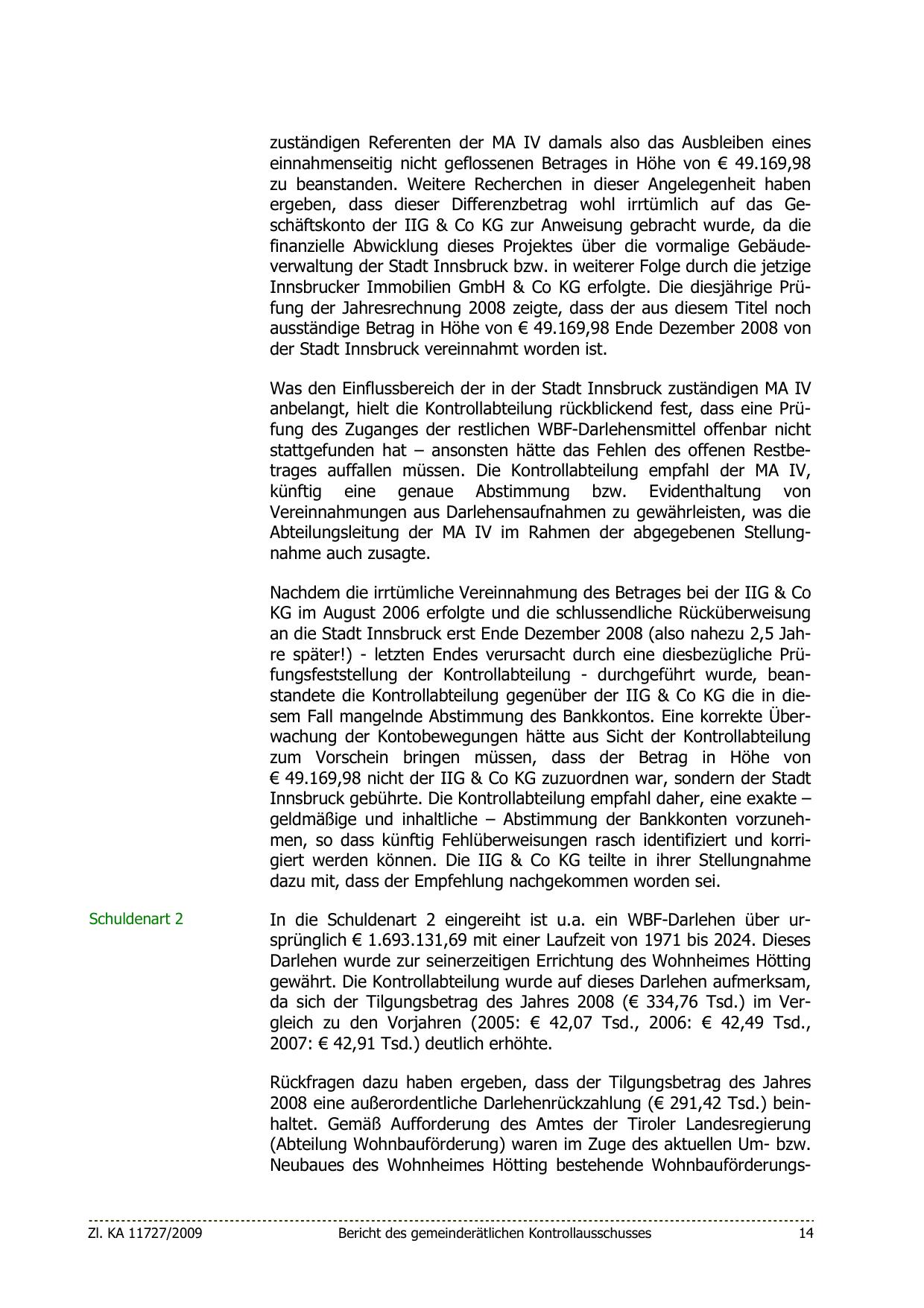 Innsbrucker Immobilien GmbH & Co KG erfolgte. Die diesjährige Prüfung der Jahresrechnung 2008 zeigte, dass der aus diesem Titel noch