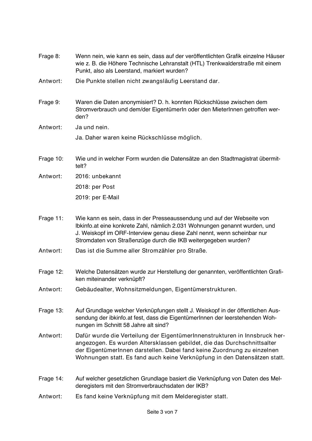 Wohnungen statt. Es fand auch keine Verknüpfung in den Datensätzen statt.