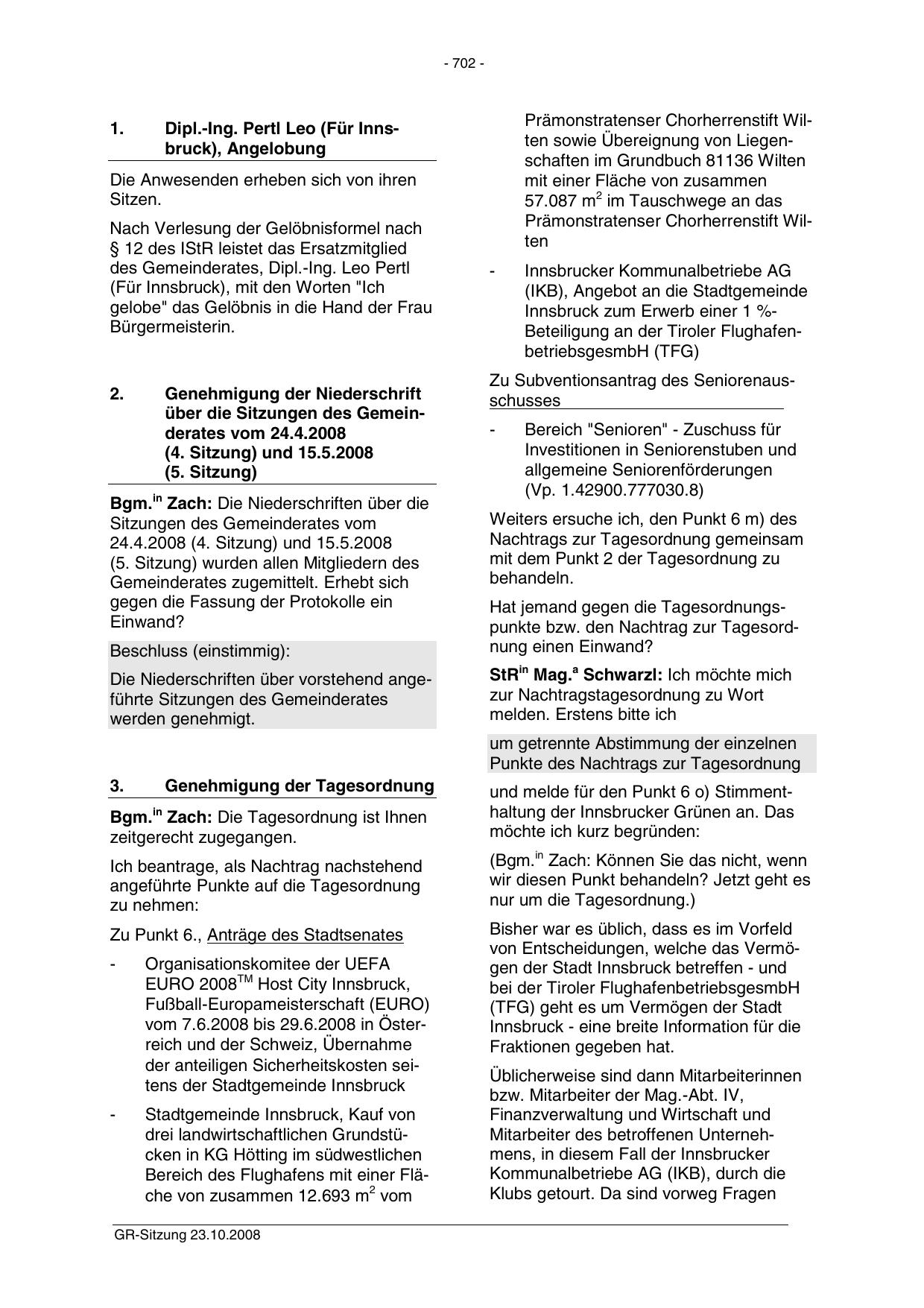 Bgm. Zach: Die Tagesordnung ist Ihnen
