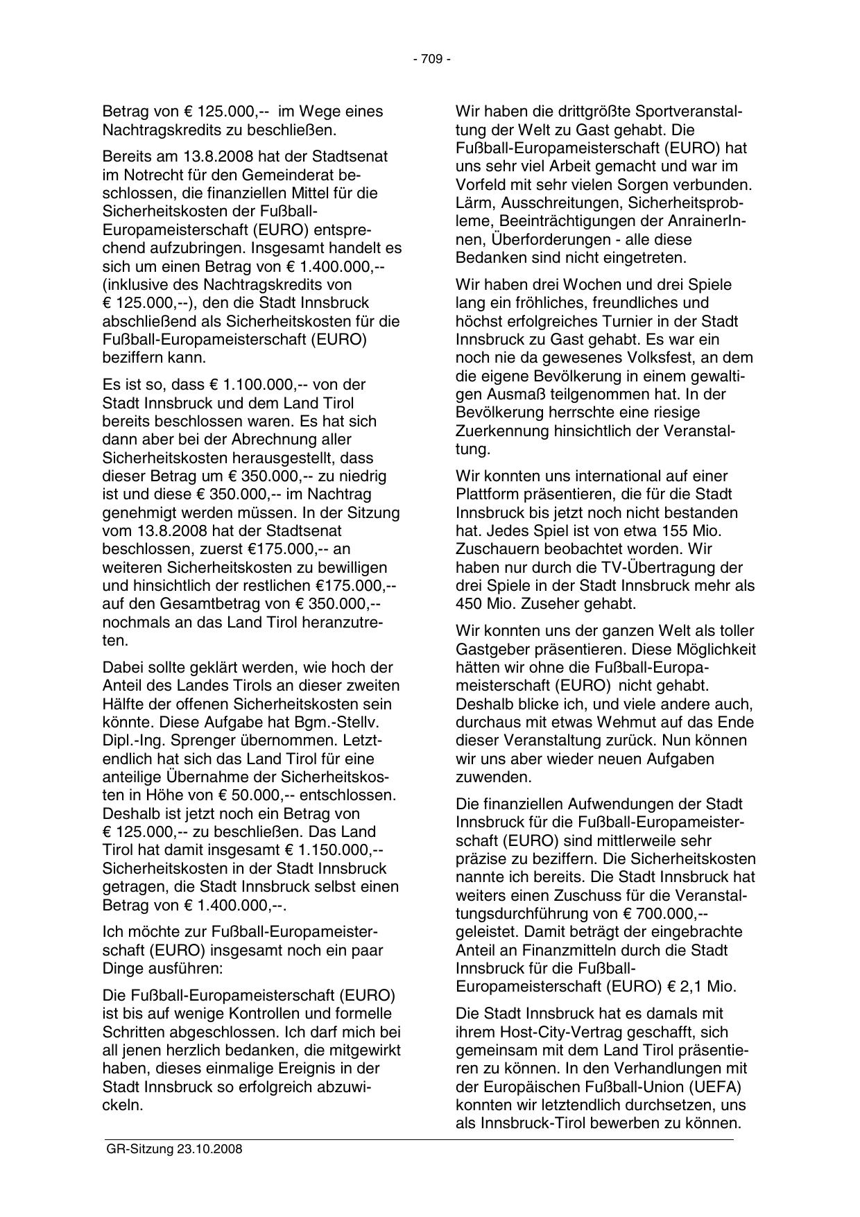 Tirol hat damit insgesamt € 1.150.000,-Sicherheitskosten in der Stadt Innsbruck