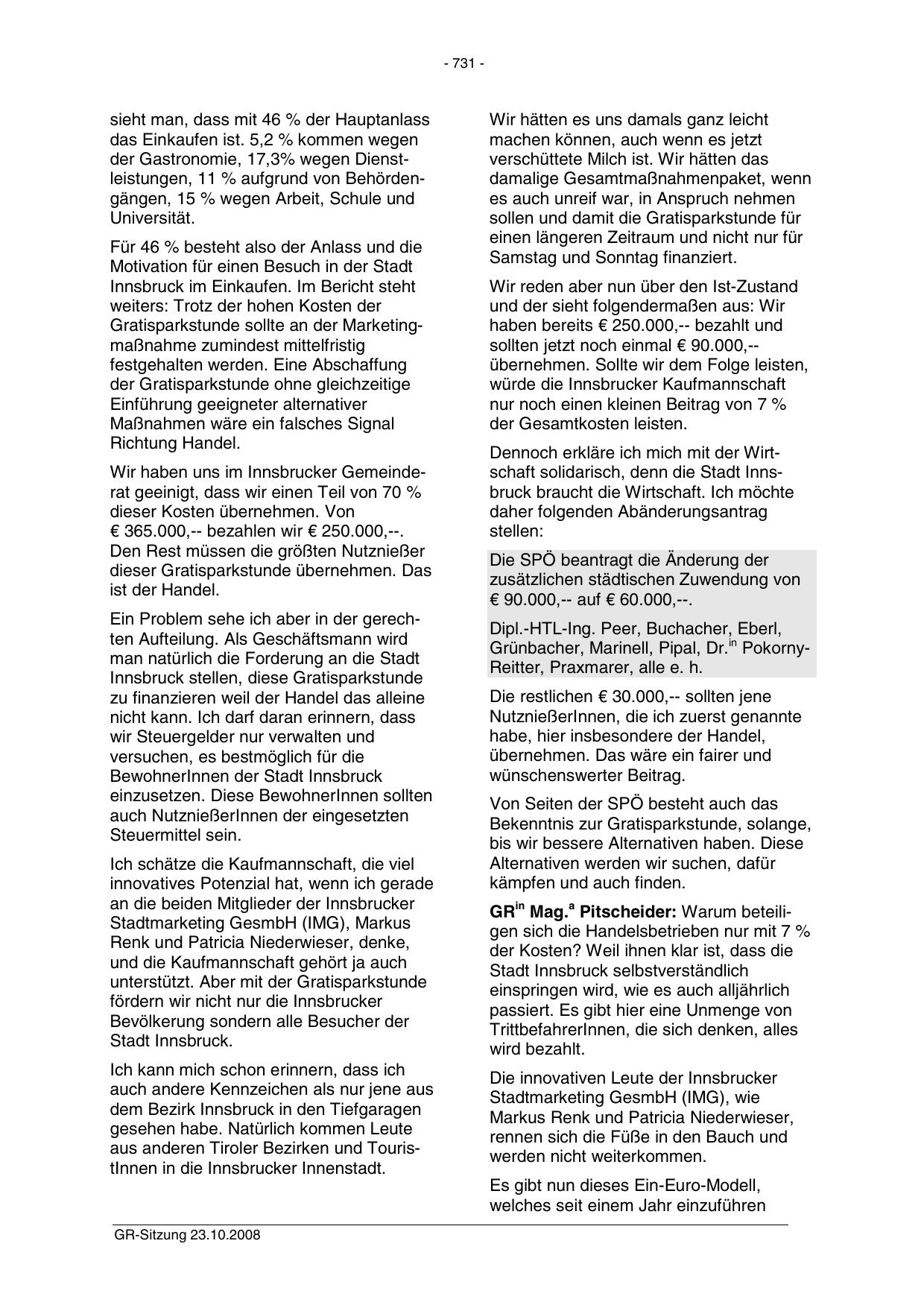 Dennoch erkläre ich mich mit der Wirtschaft solidarisch, denn die Stadt Innsbruck braucht die Wirtschaft. Ich möchte
