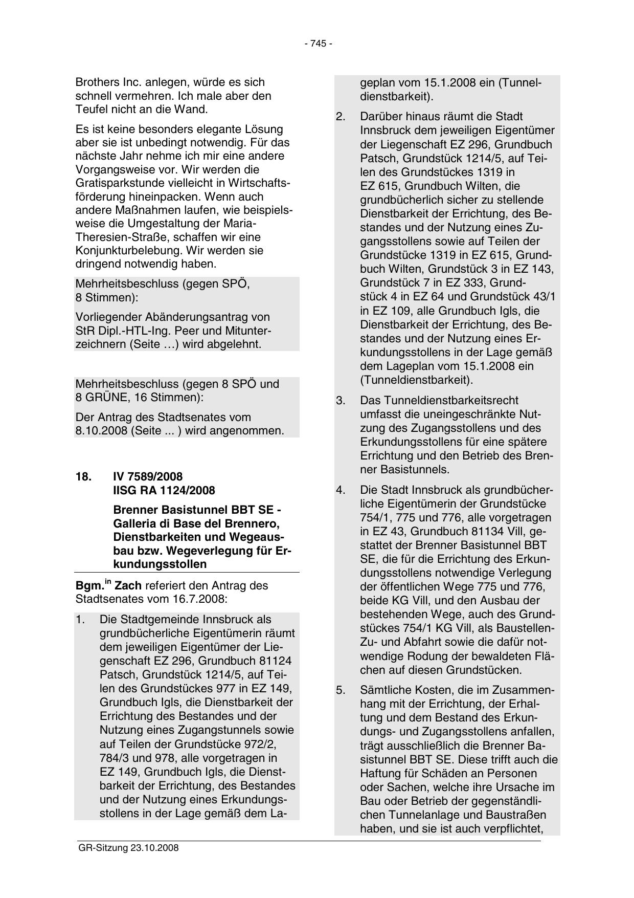 Mehrheitsbeschluss (gegen 8 SPÖ und