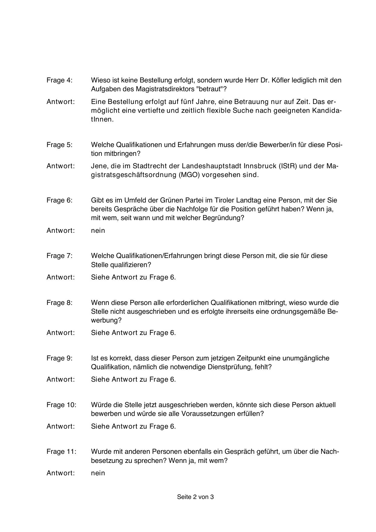 Gibt es im Umfeld der Grünen Partei im Tiroler Landtag eine Person, mit der Sie