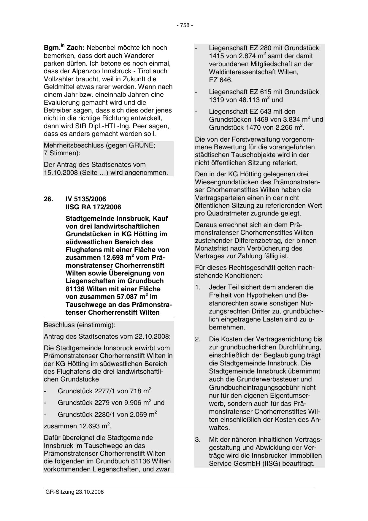Die Stadtgemeinde Innsbruck erwirbt vom