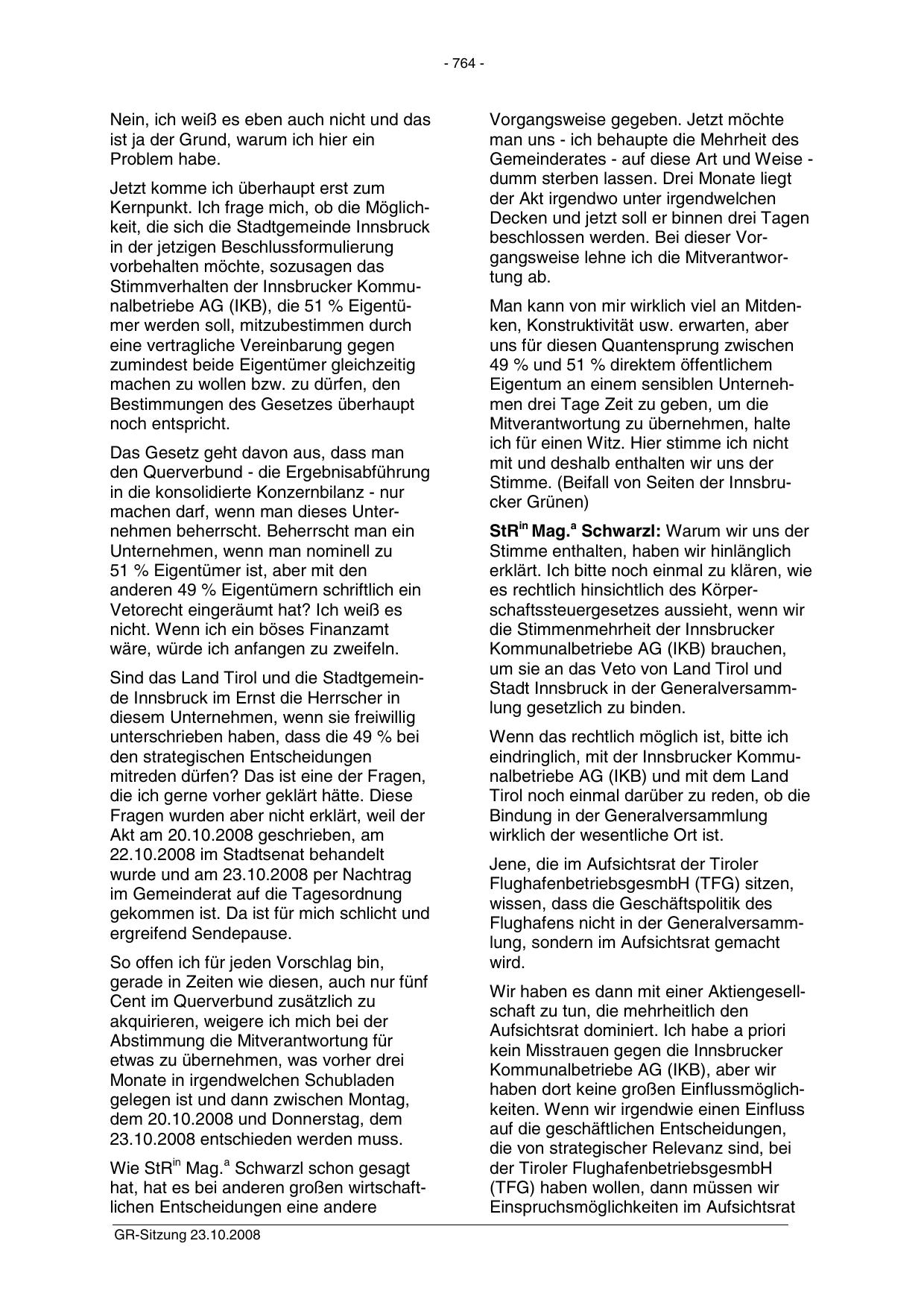 Stadt Innsbruck in der Generalversammlung gesetzlich zu binden.