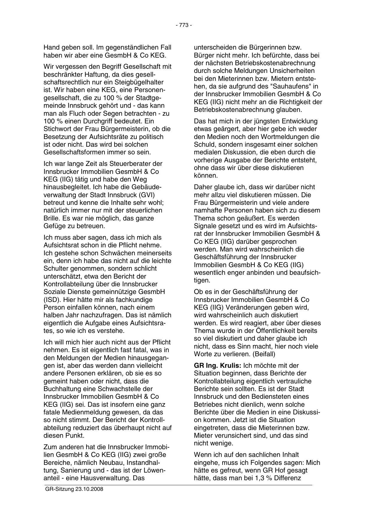 ist. Wir haben eine KEG, eine Personengesellschaft, die zu 100 % der Stadtgemeinde Innsbruck gehört und - das kann