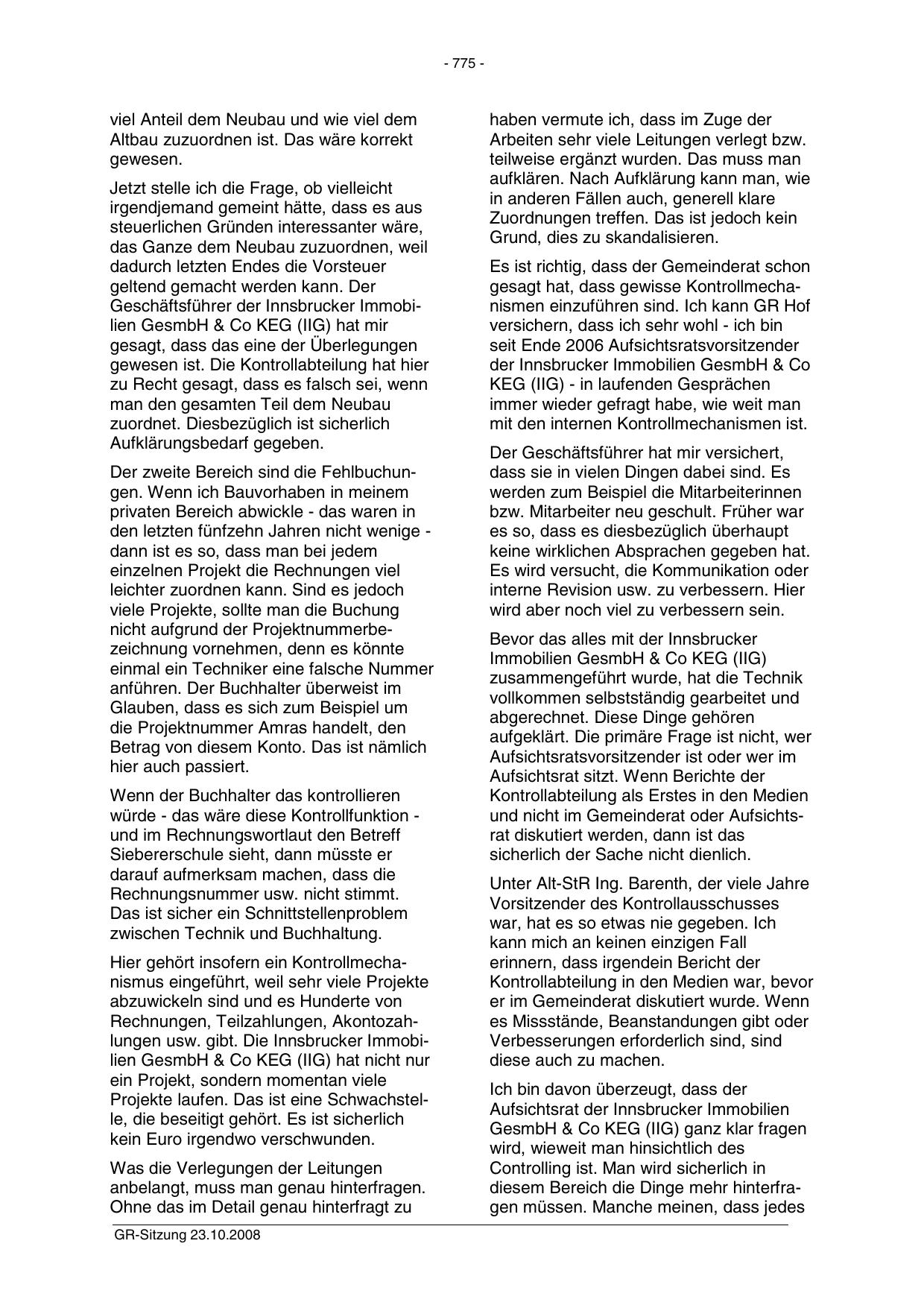 Rechnungen, Teilzahlungen, Akontozahlungen usw. gibt. Die Innsbrucker Immobilien GesmbH & Co KEG (IIG) hat nicht nur