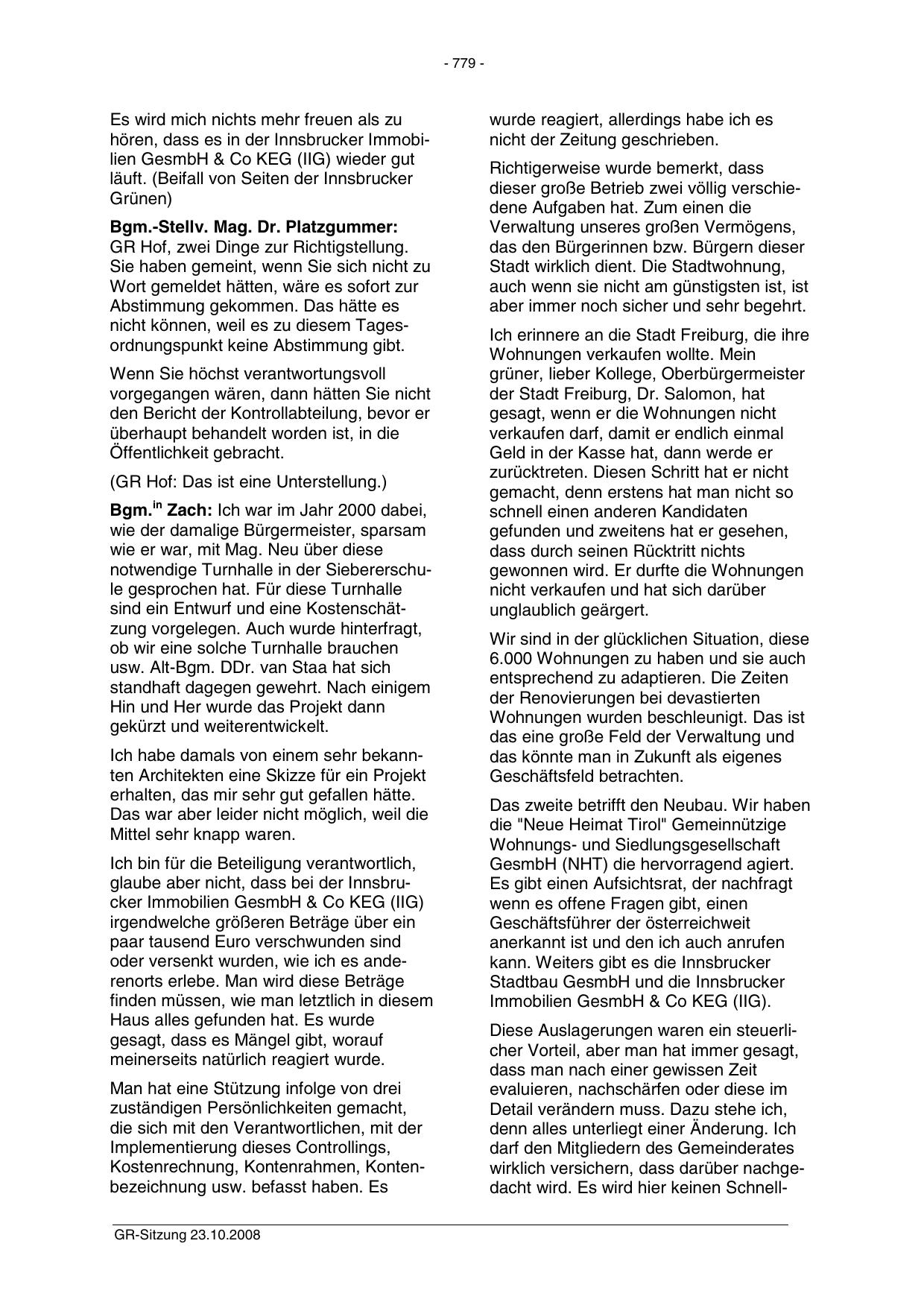Bgm.-Stellv. Mag. Dr. Platzgummer: