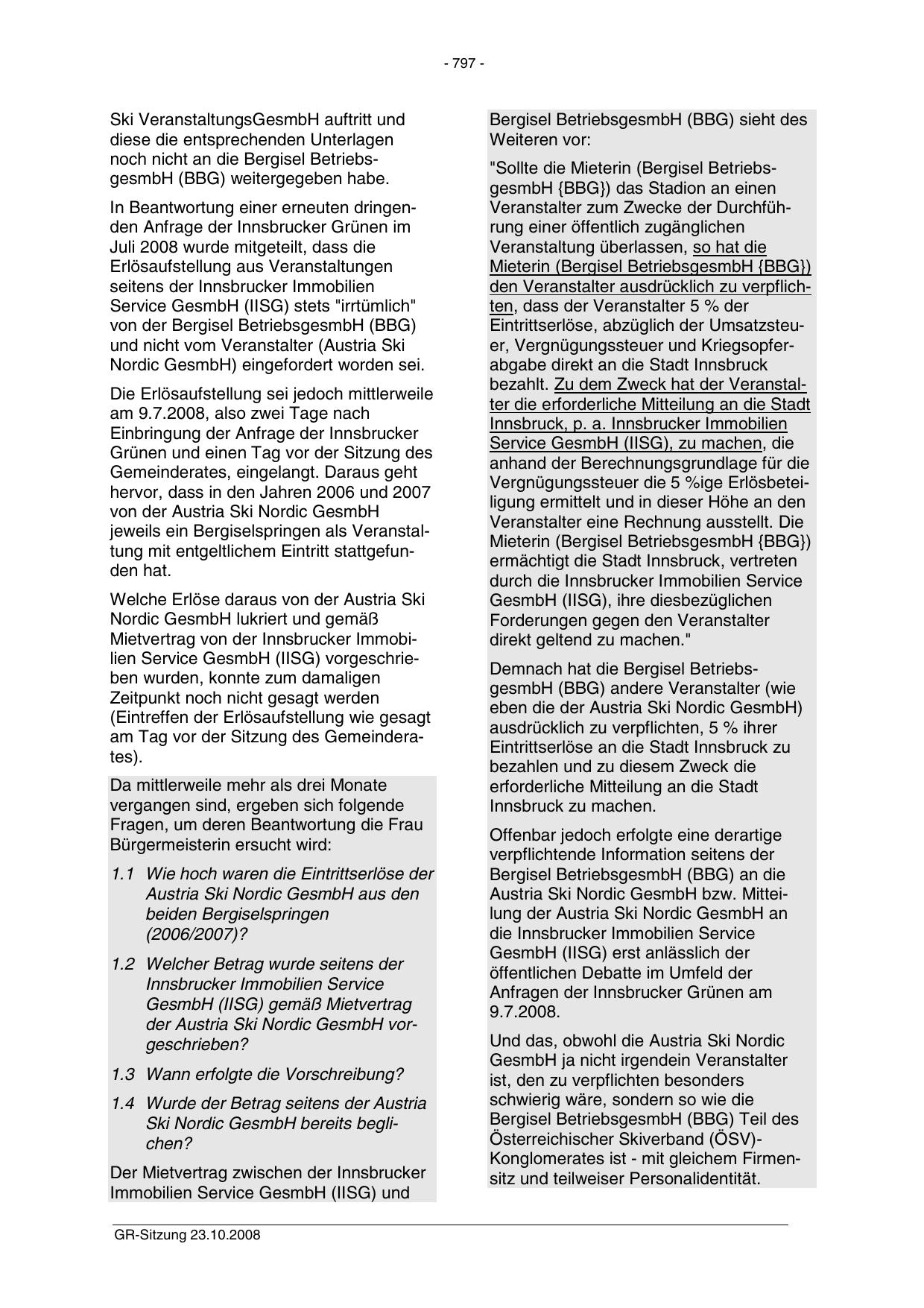 In Beantwortung einer erneuten dringenden Anfrage der Innsbrucker Grünen im
