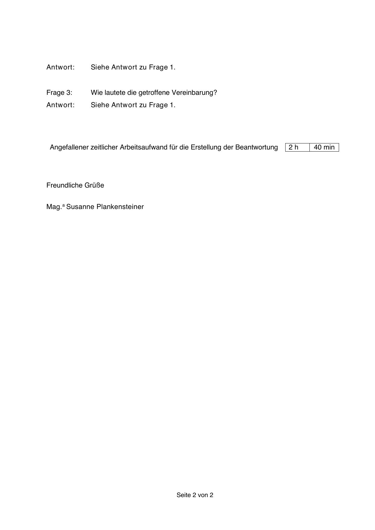 Angefallener zeitlicher Arbeitsaufwand für die Erstellung der Beantwortung