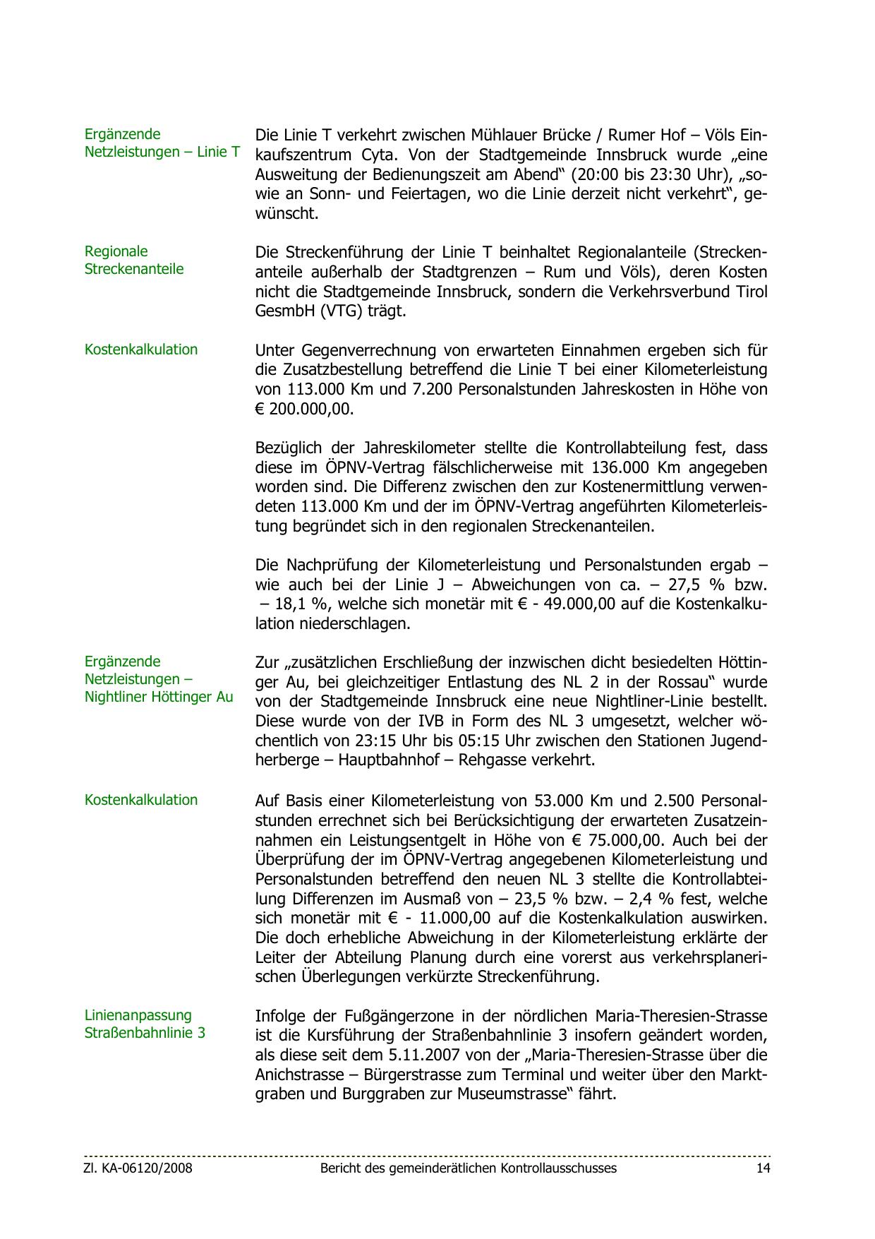 worden sind. Die Differenz zwischen den zur Kostenermittlung verwendeten 113.000 Km und der im ÖPNV-Vertrag angeführten Kilometerleistung begründet sich in den regionalen Streckenanteilen.