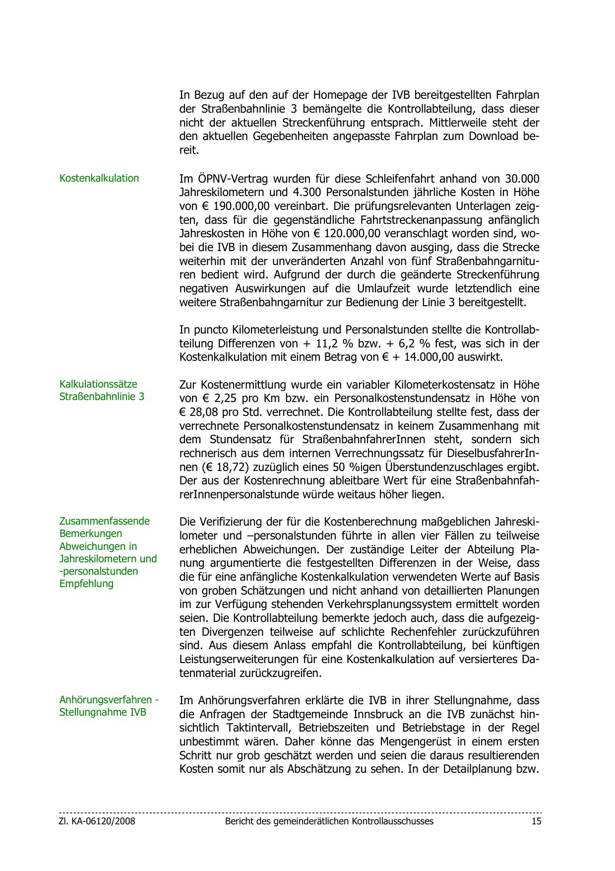Jahreskosten in Höhe von € 120.000,00 veranschlagt worden sind, wobei die IVB in diesem Zusammenhang davon ausging, dass die Strecke