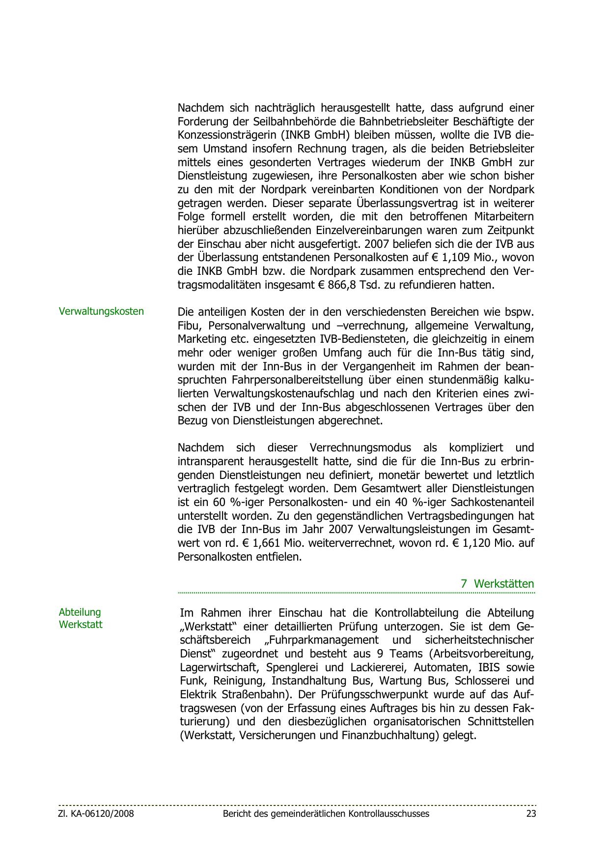 die IVB der Inn-Bus im Jahr 2007 Verwaltungsleistungen im Gesamtwert von rd. € 1,661 Mio. weiterverrechnet, wovon rd. € 1,120 Mio. auf