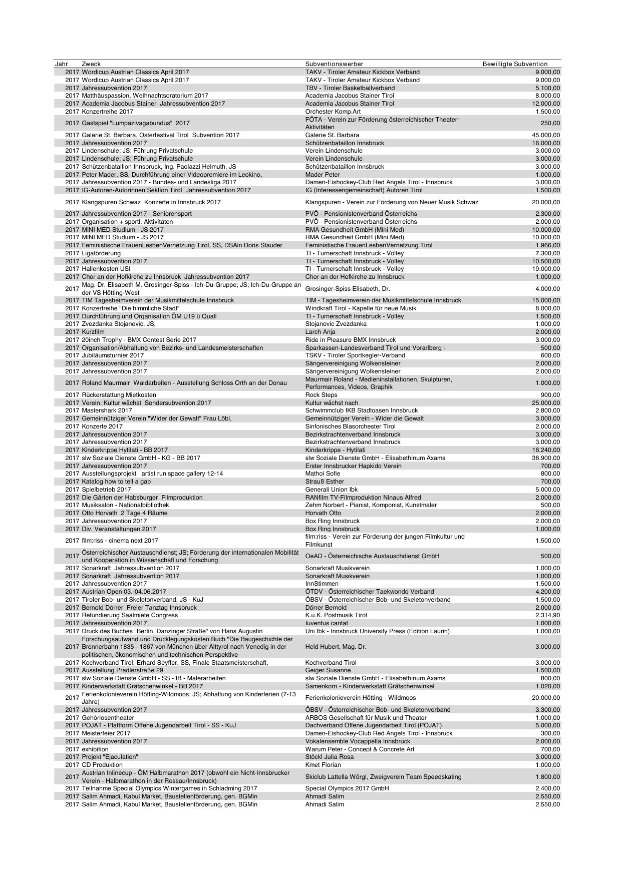 2017 IG-Autoren-Autorinnen Sektion Tirol Jahressubvention 2017