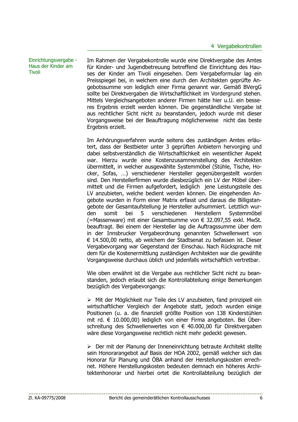 für Kinder- und Jugendbetreuung betreffend die Einrichtung des Hauses der Kinder am Tivoli eingesehen. Dem Vergabeformular lag ein