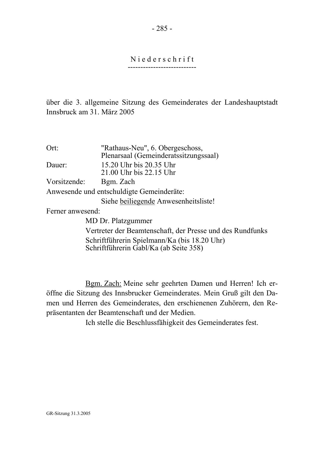 GR-Sitzung 31.3.2005