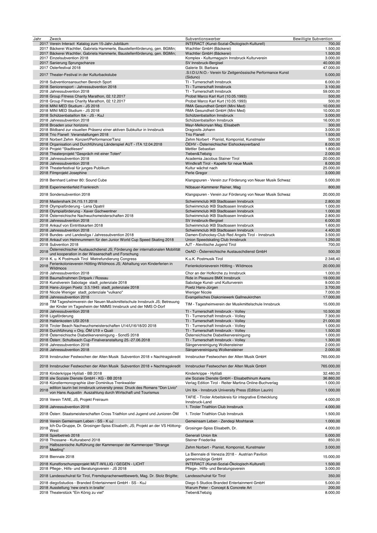 2018 Innsbrucker Festwochen der Alten Musik Subvention 2018 + Nachtragskredit