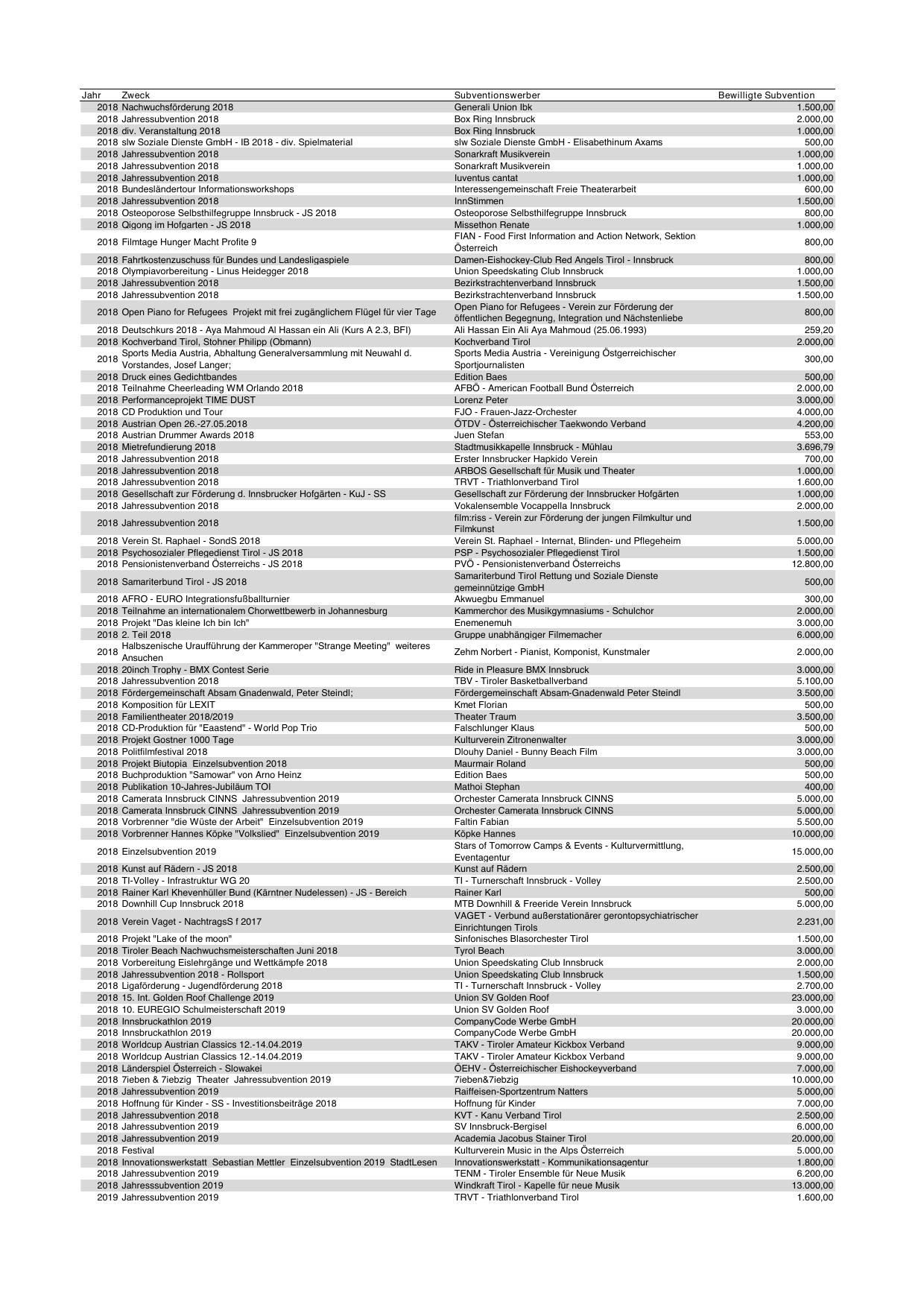 2018 Camerata Innsbruck CINNS Jahressubvention 2019