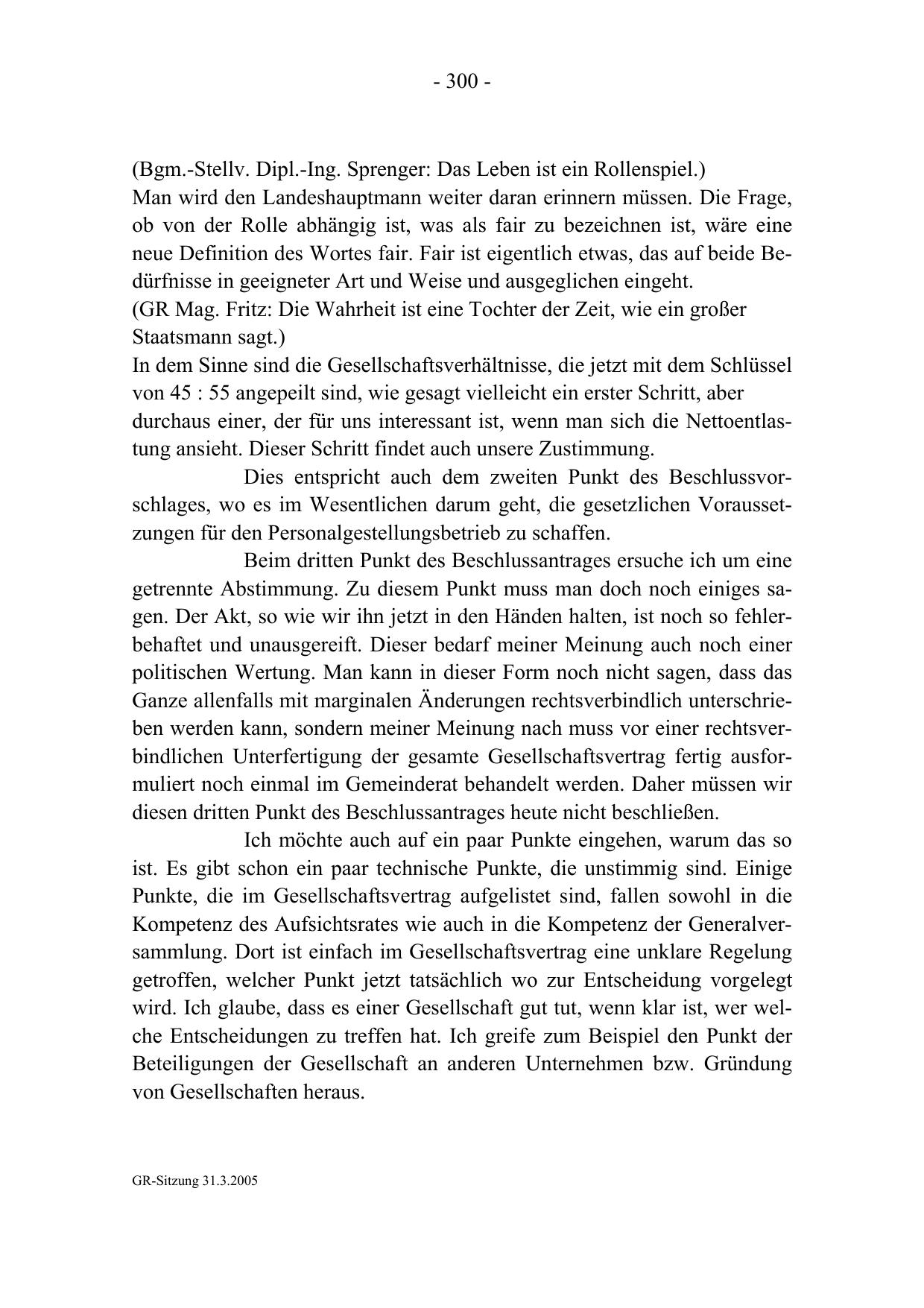 Ganze allenfalls mit marginalen Änderungen rechtsverbindlich unterschrieben werden kann, sondern meiner Meinung nach muss vor einer rechtsverbindlichen Unterfertigung der gesamte Gesellschaftsvertrag fertig ausformuliert noch einmal im Gemeinderat behandelt werden. Daher müssen wir