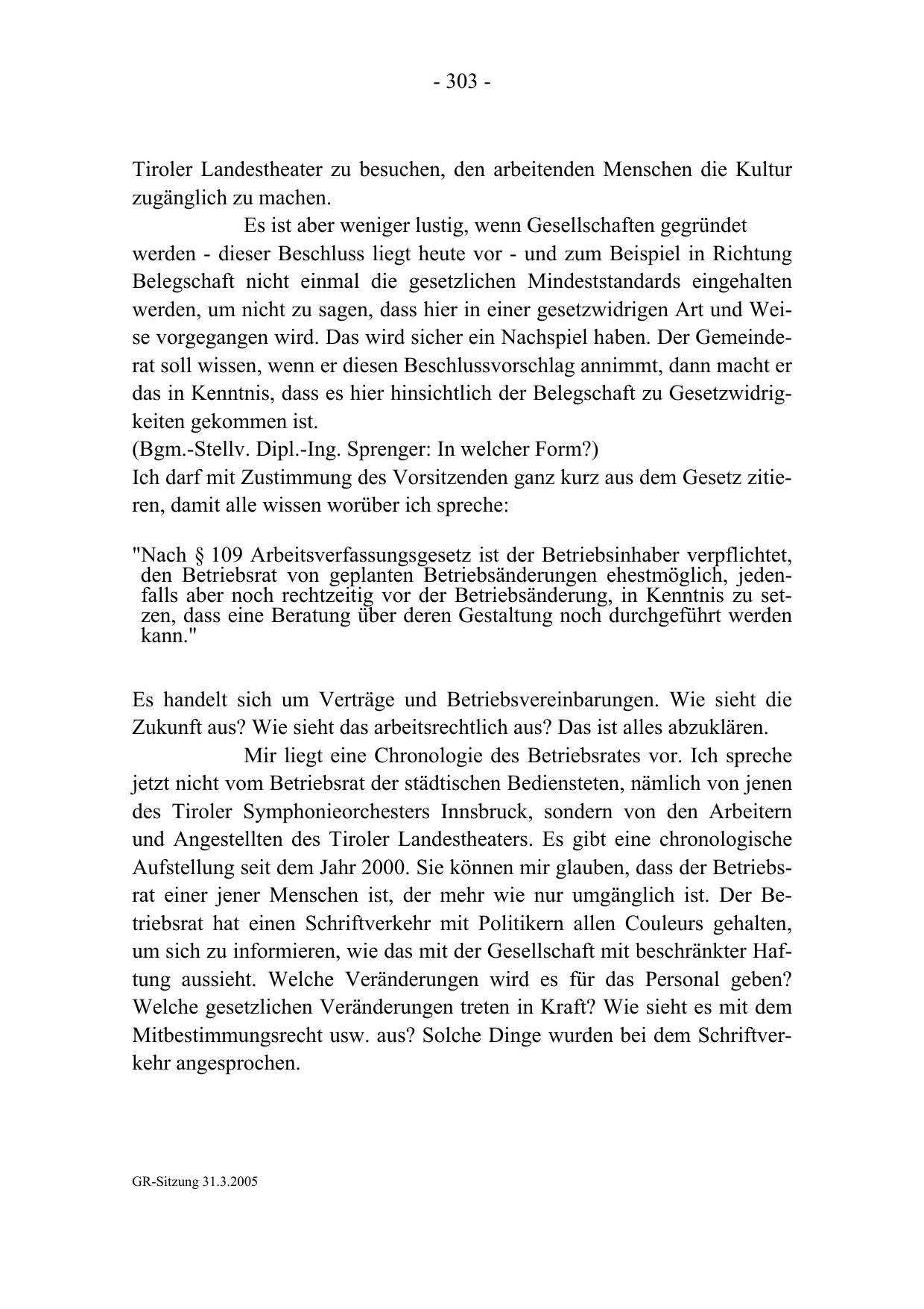 werden, um nicht zu sagen, dass hier in einer gesetzwidrigen Art und Weise vorgegangen wird. Das wird sicher ein Nachspiel haben. Der Gemeinderat soll wissen, wenn er diesen Beschlussvorschlag annimmt, dann macht er