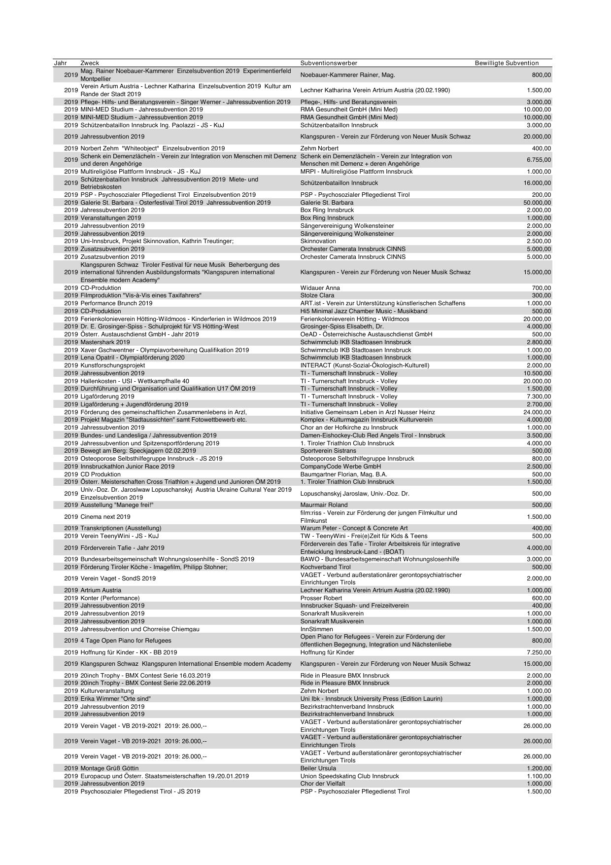 2019 PSP - Psychosozialer Pflegedienst Tirol Einzelsubvention 2019