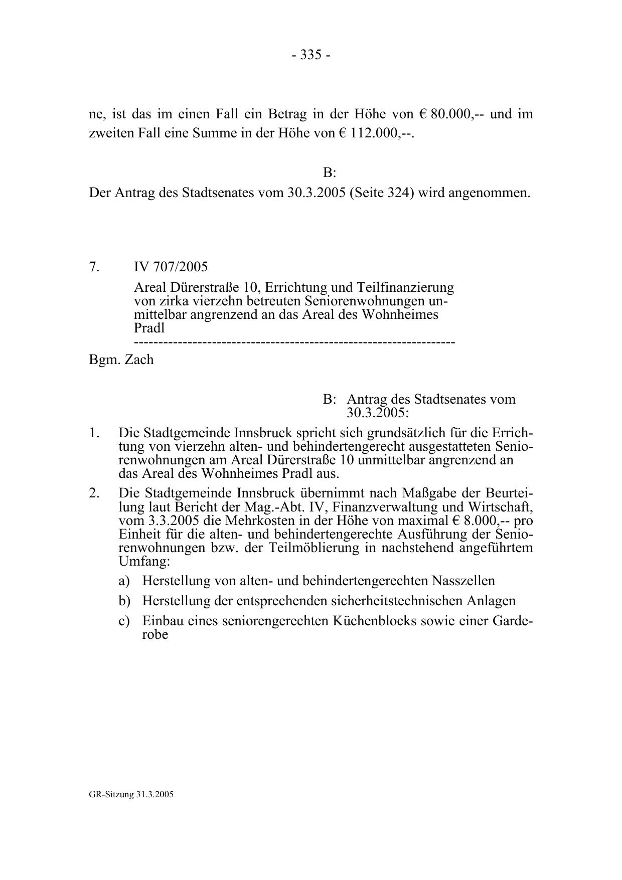 Der Antrag des Stadtsenates vom 30.3.2005 (Seite 324) wird angenommen.