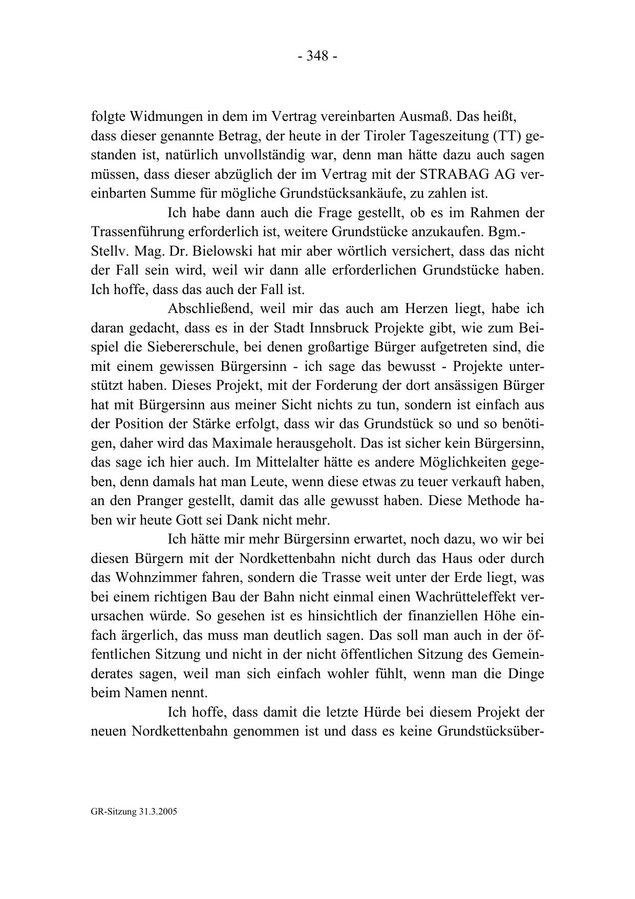 Trassenführung erforderlich ist, weitere Grundstücke anzukaufen. Bgm.Stellv. Mag. Dr. Bielowski hat mir aber wörtlich versichert, dass das nicht