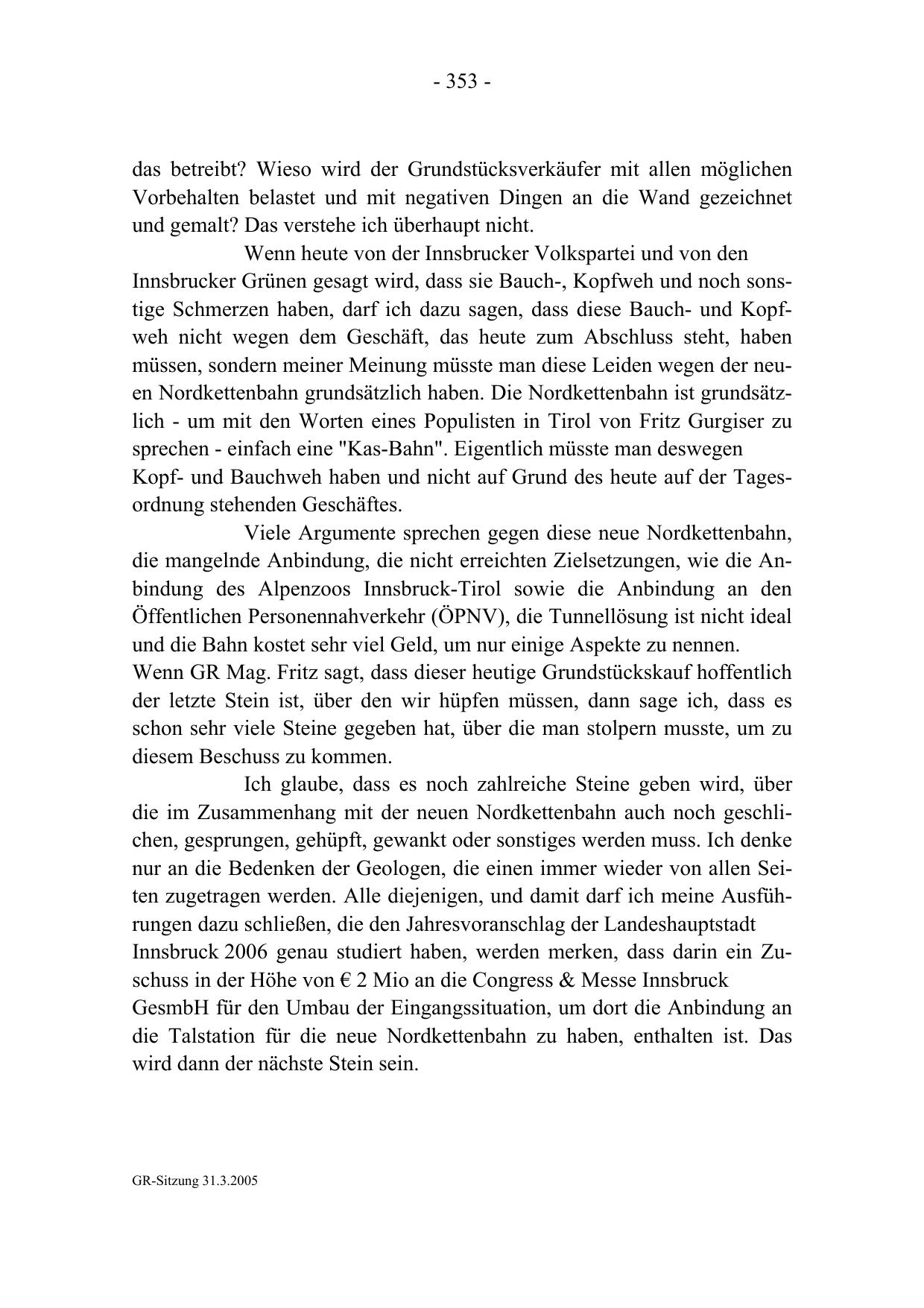 müssen, sondern meiner Meinung müsste man diese Leiden wegen der neuen Nordkettenbahn grundsätzlich haben. Die Nordkettenbahn ist grundsätzlich - um mit den Worten eines Populisten in Tirol von Fritz Gurgiser zu