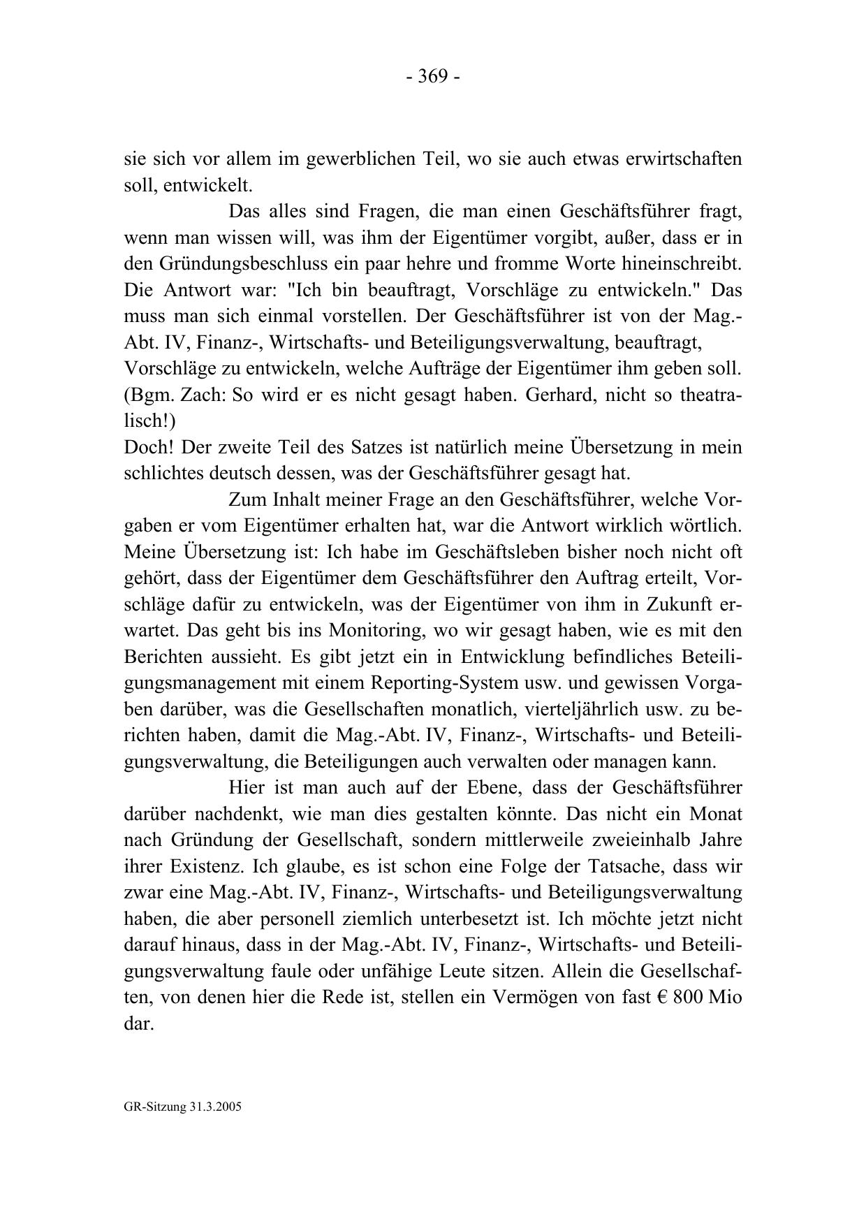 darauf hinaus, dass in der Mag.-Abt. IV, Finanz-, Wirtschafts- und Beteiligungsverwaltung faule oder unfähige Leute sitzen. Allein die Gesellschaften, von denen hier die Rede ist, stellen ein Vermögen von fast € 800 Mio