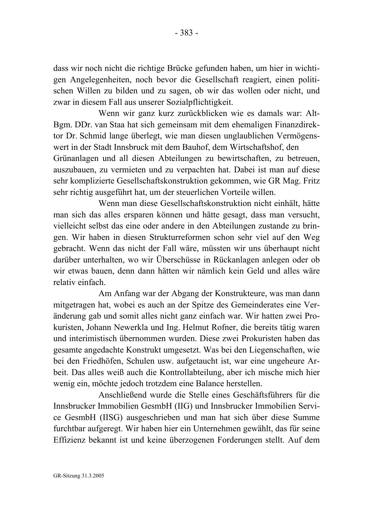 mitgetragen hat, wobei es auch an der Spitze des Gemeinderates eine Veränderung gab und somit alles nicht ganz einfach war. Wir hatten zwei Prokuristen, Johann Newerkla und Ing. Helmut Rofner, die bereits tätig waren