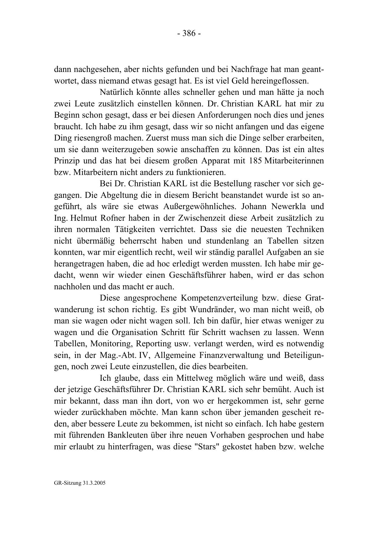 Bei Dr. Christian KARL ist die Bestellung rascher vor sich gegangen. Die Abgeltung die in diesem Bericht beanstandet wurde ist so angeführt, als wäre sie etwas Außergewöhnliches. Johann Newerkla und