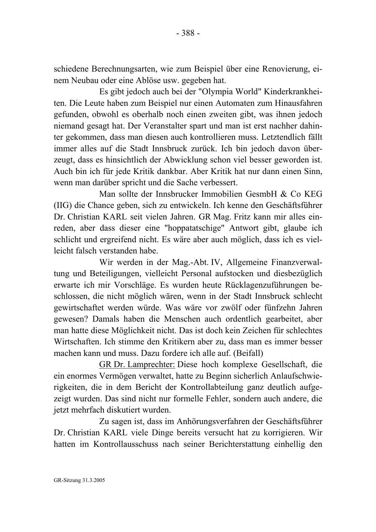 Dr. Christian KARL seit vielen Jahren. GR Mag. Fritz kann mir alles einreden, aber dass dieser eine "hoppatatschige" Antwort gibt, glaube ich