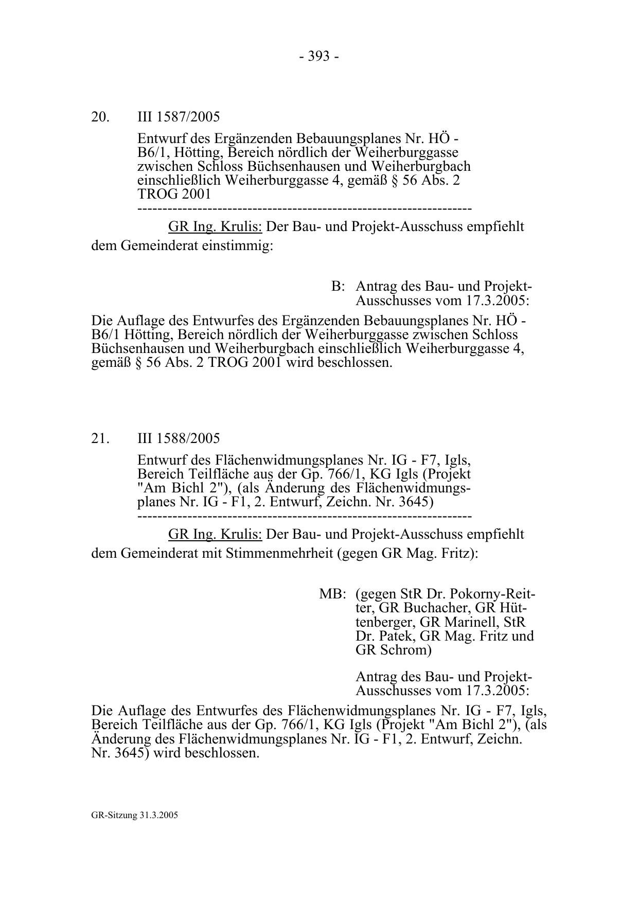 GR-Sitzung 31.3.2005