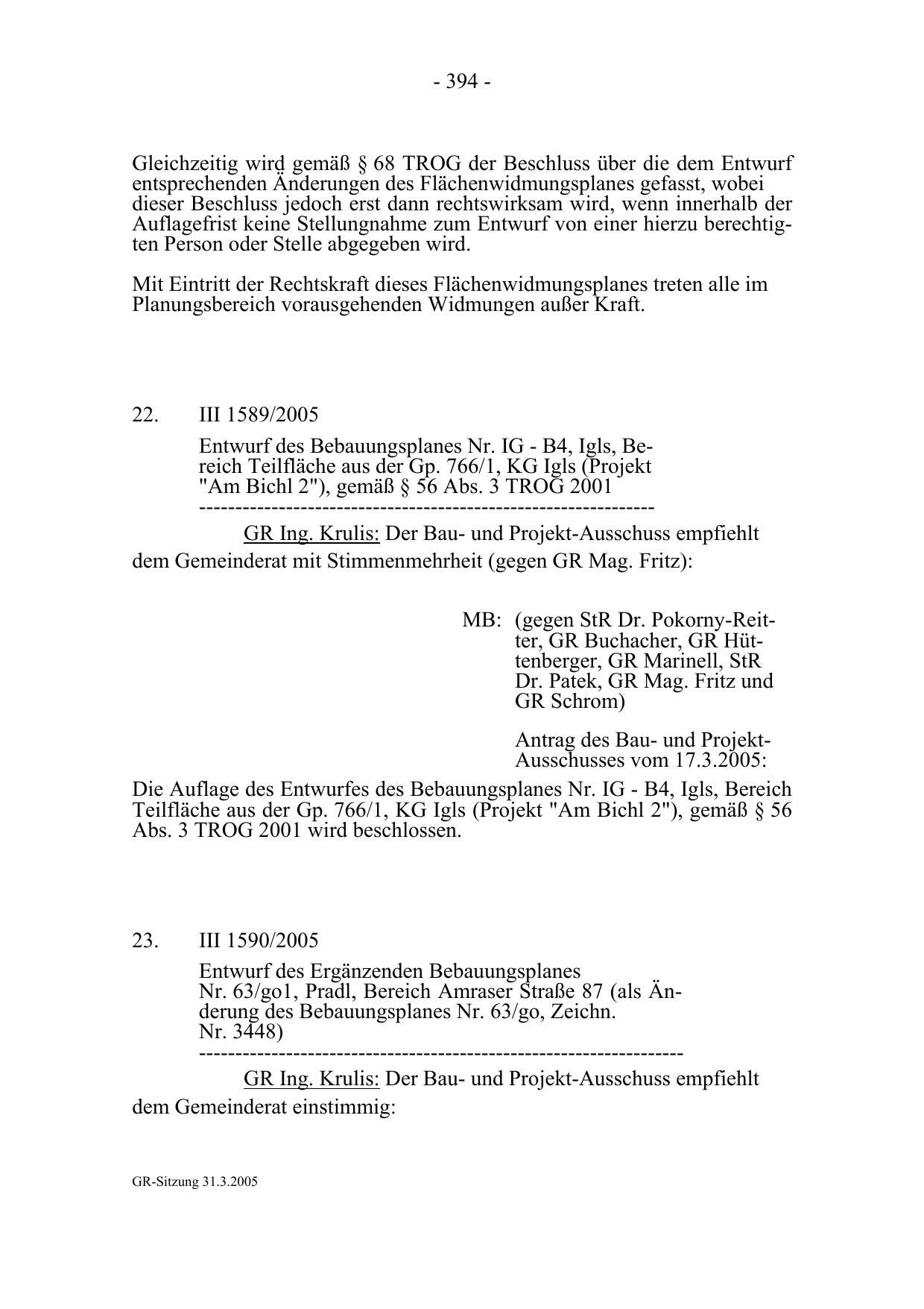 Gleichzeitig wird gemäß § 68 TROG der Beschluss über die dem Entwurf