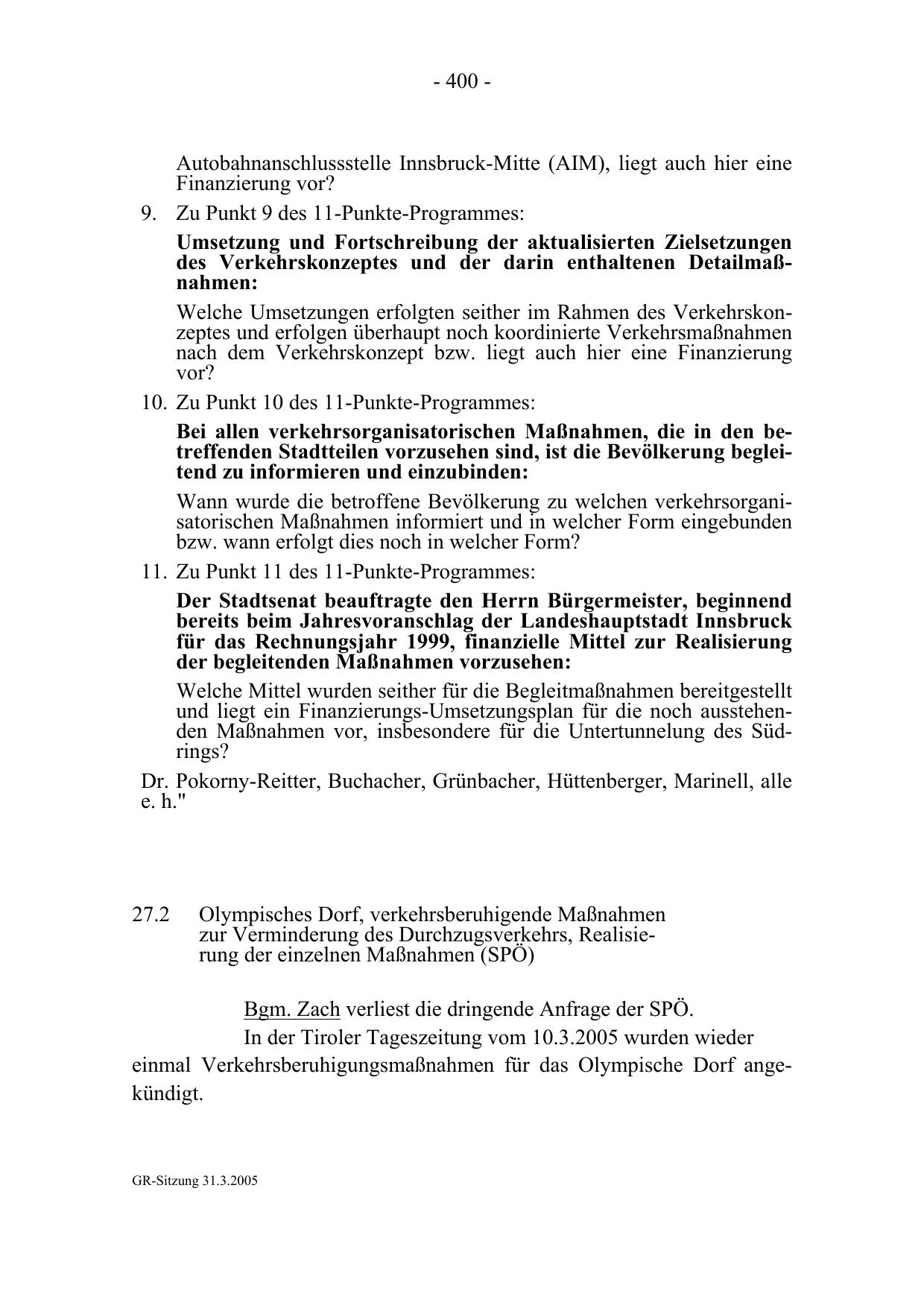 einmal Verkehrsberuhigungsmaßnahmen für das Olympische Dorf angekündigt.