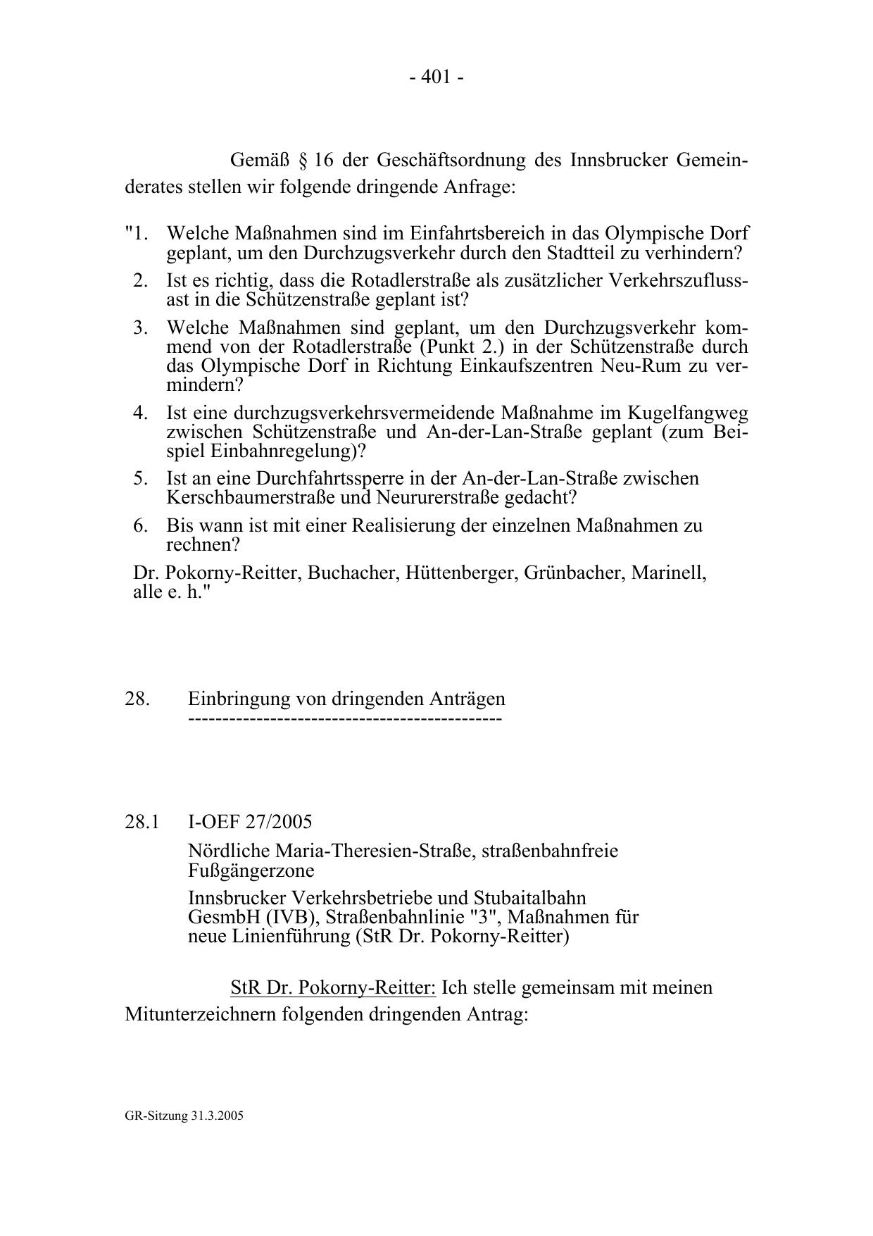 Gemäß § 16 der Geschäftsordnung des Innsbrucker Gemeinderates stellen wir folgende dringende Anfrage: