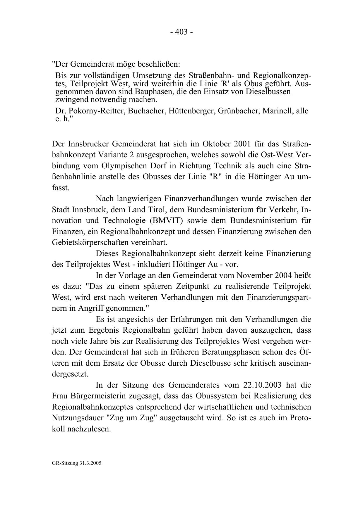 In der Sitzung des Gemeinderates vom 22.10.2003 hat die