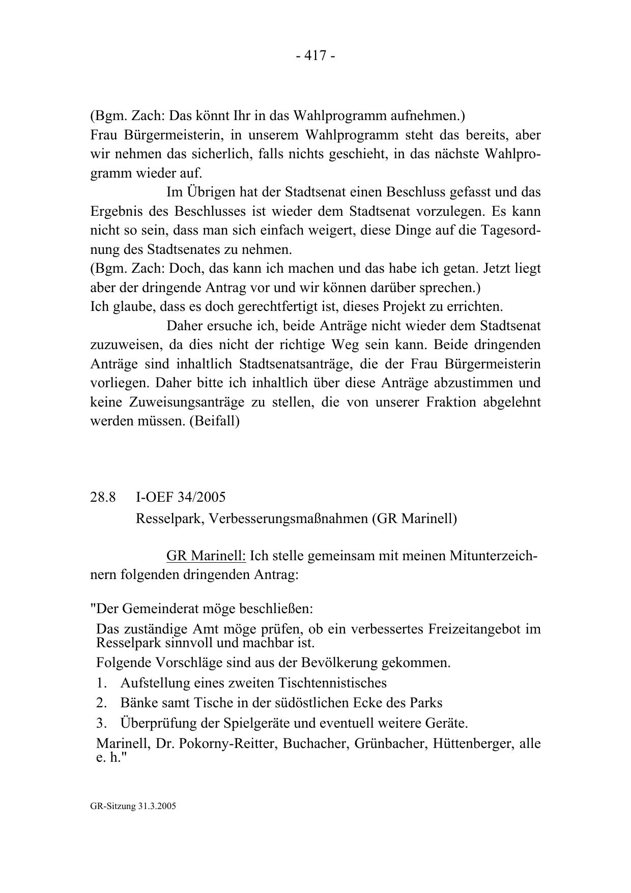 Daher ersuche ich, beide Anträge nicht wieder dem Stadtsenat
