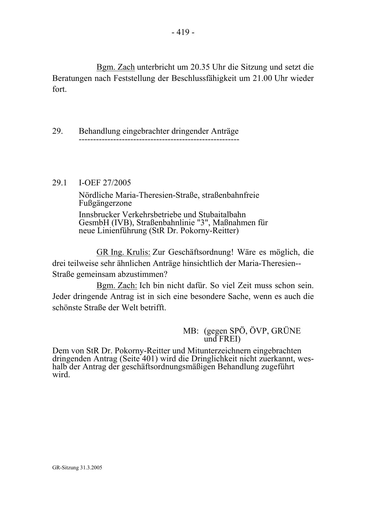 GR Ing. Krulis: Zur Geschäftsordnung! Wäre es möglich, die