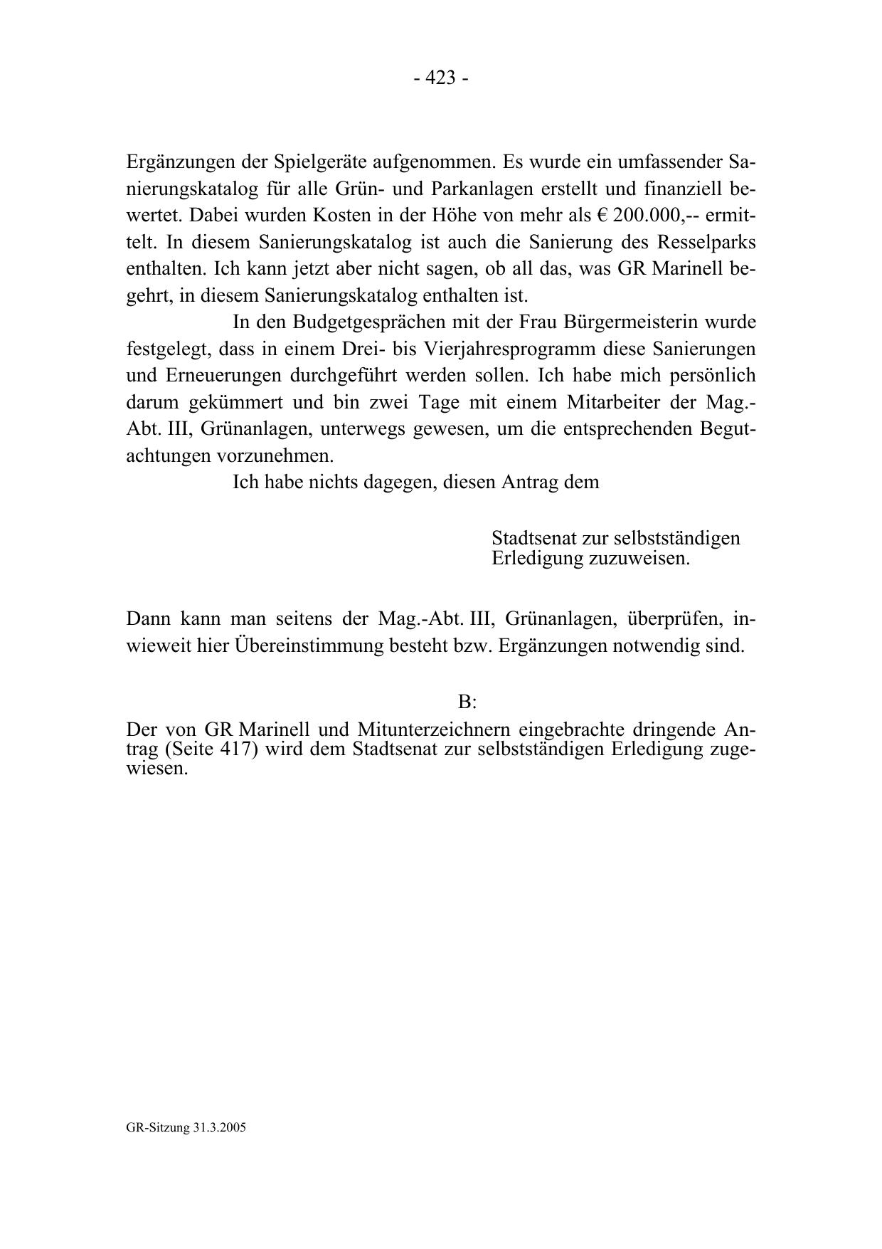 GR-Sitzung 31.3.2005