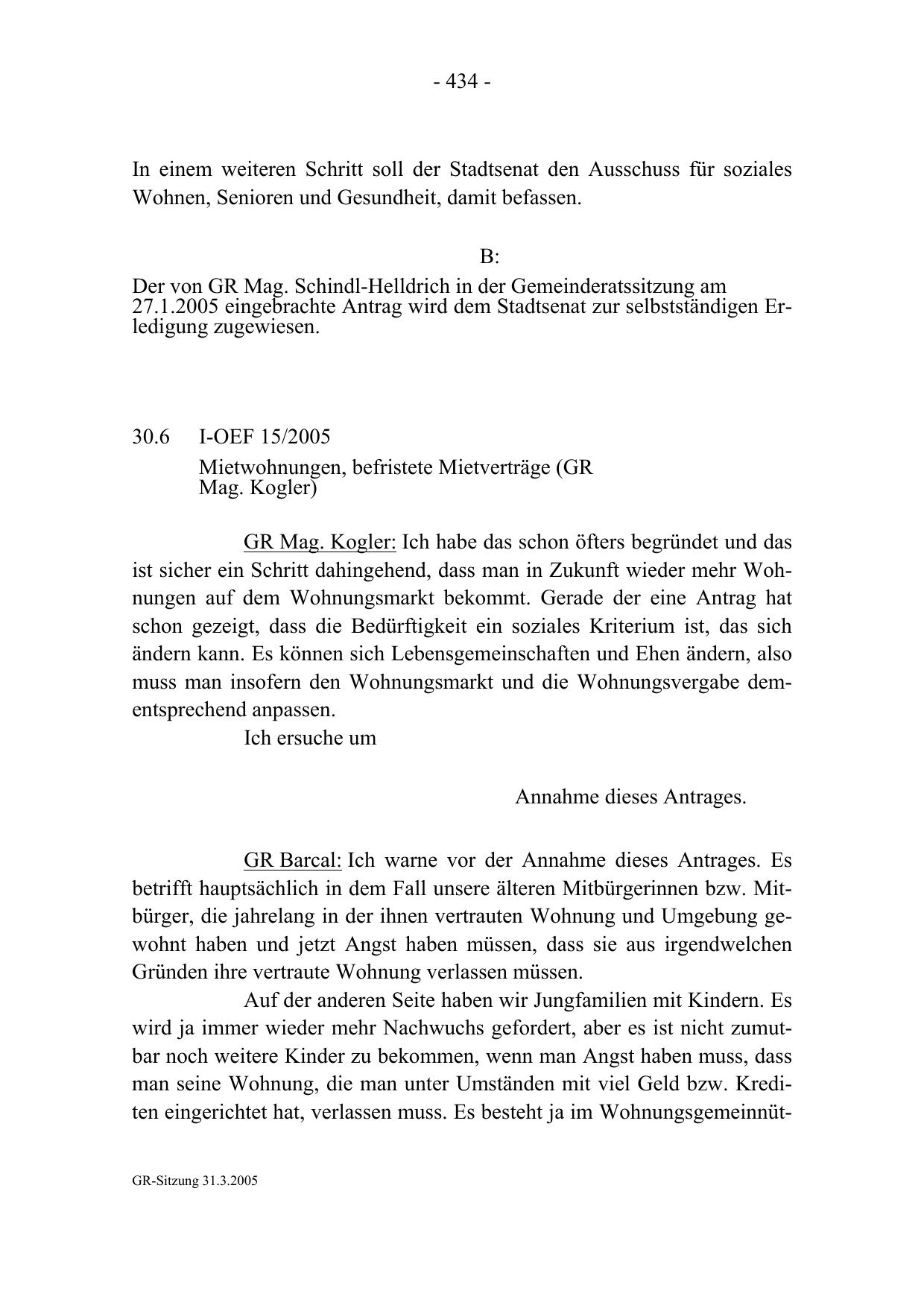 man seine Wohnung, die man unter Umständen mit viel Geld bzw. Krediten eingerichtet hat, verlassen muss. Es besteht ja im WohnungsgemeinnütGR-Sitzung 31.3.2005