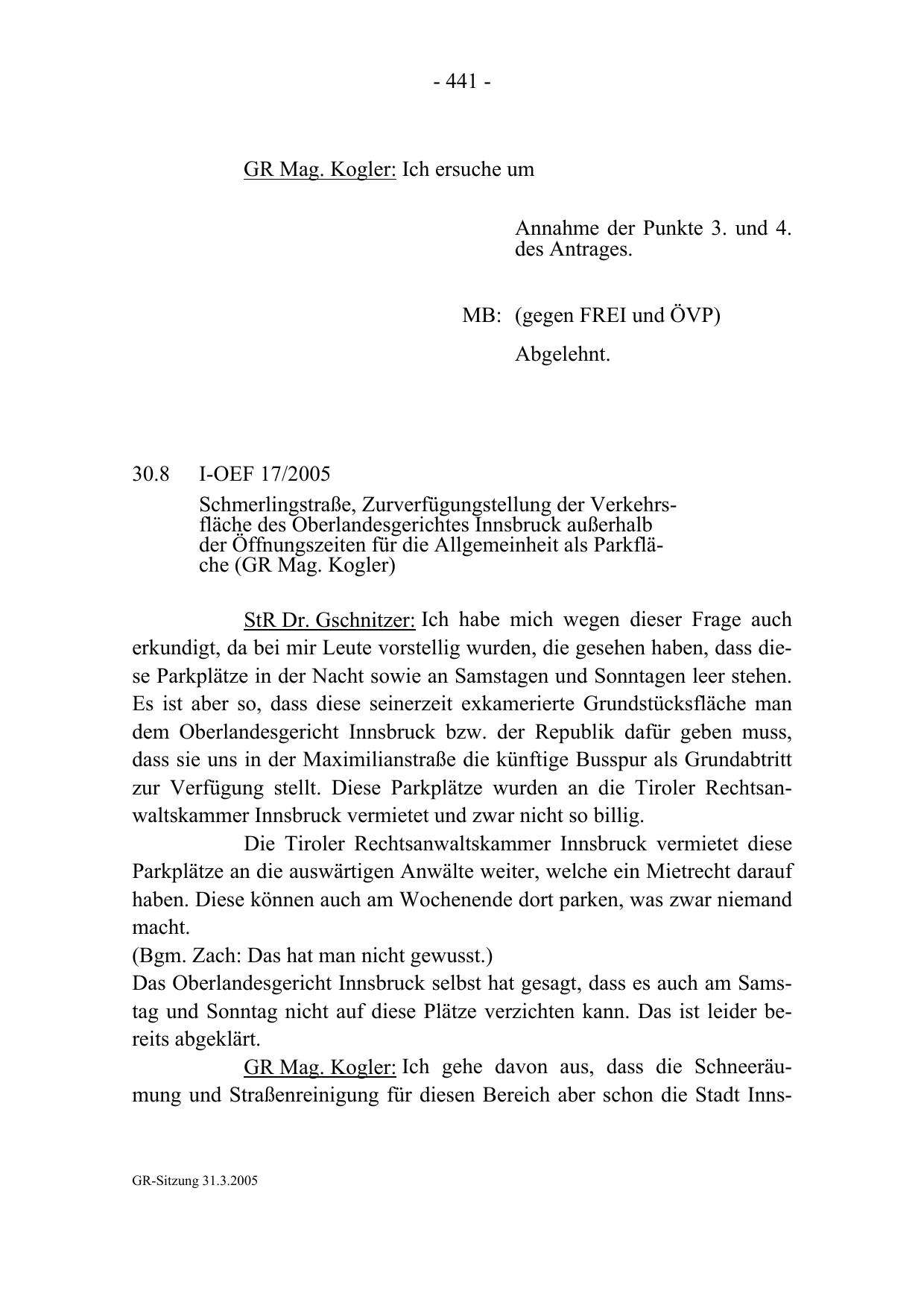 GR Mag. Kogler: Ich gehe davon aus, dass die Schneeräumung und Straßenreinigung für diesen Bereich aber schon die Stadt Inns-