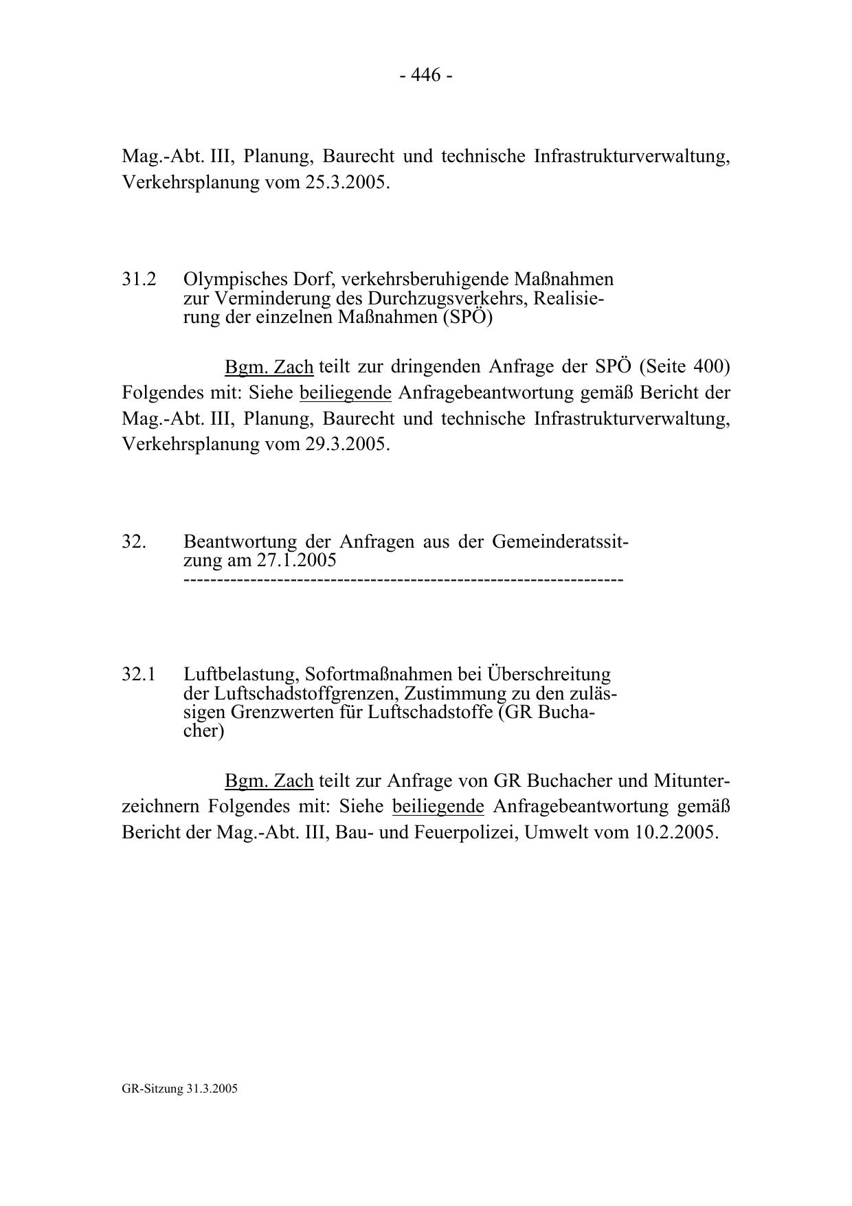 Bgm. Zach teilt zur dringenden Anfrage der SPÖ (Seite 400)