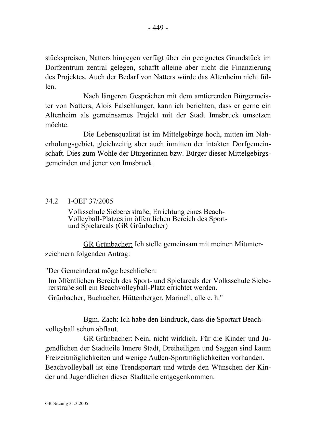 Volksschule Siebererstraße, Errichtung eines BeachVolleyball-Platzes im öffentlichen Bereich des Sportund Spielareals (GR Grünbacher)