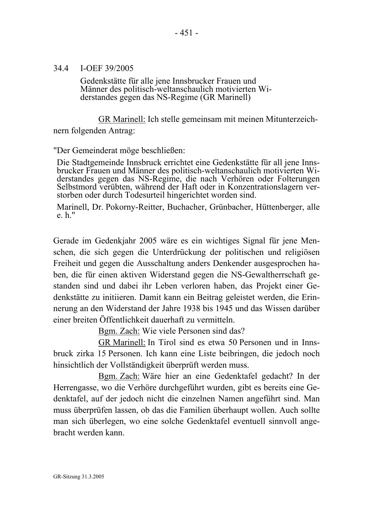 GR Marinell: Ich stelle gemeinsam mit meinen Mitunterzeichnern folgenden Antrag: