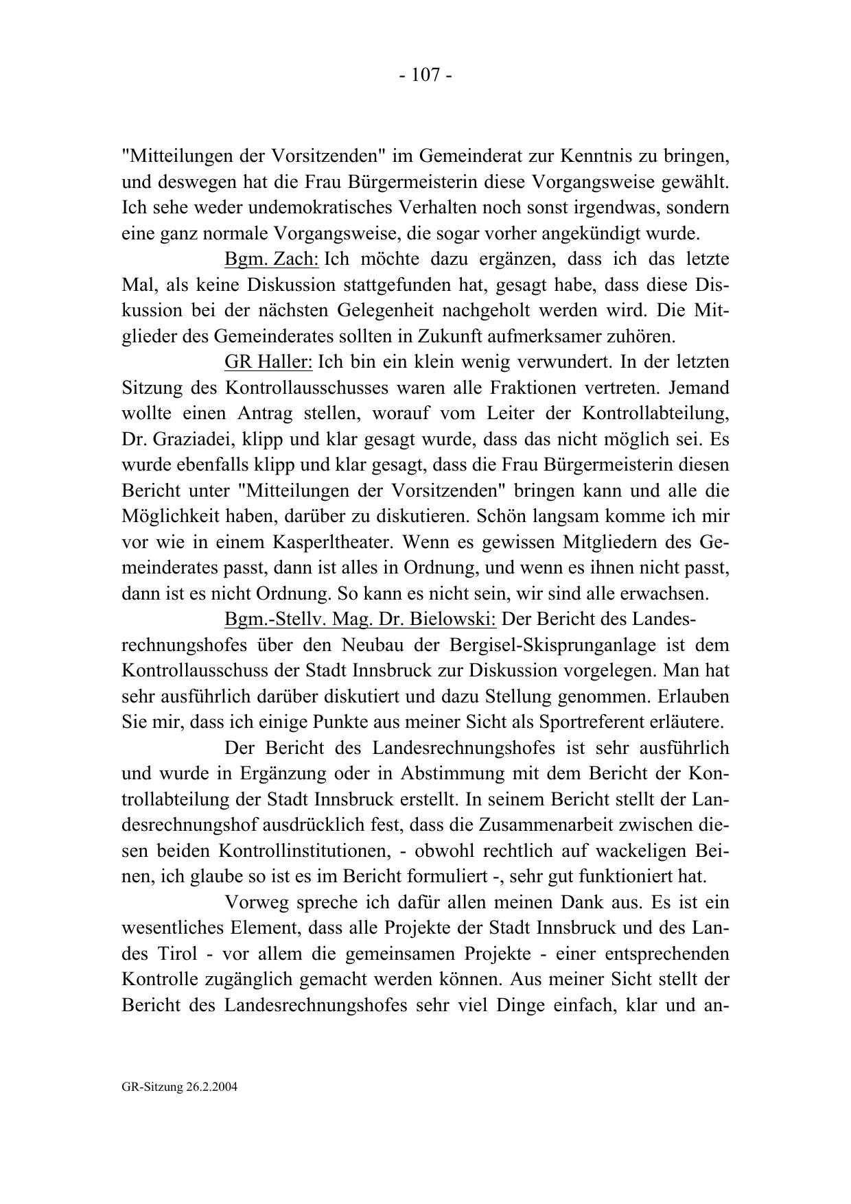 und wurde in Ergänzung oder in Abstimmung mit dem Bericht der Kontrollabteilung der Stadt Innsbruck erstellt. In seinem Bericht stellt der Landesrechnungshof ausdrücklich fest, dass die Zusammenarbeit zwischen diesen beiden Kontrollinstitutionen, - obwohl rechtlich auf wackeligen Beinen, ich glaube so ist es im Bericht formuliert -, sehr gut funktioniert hat.