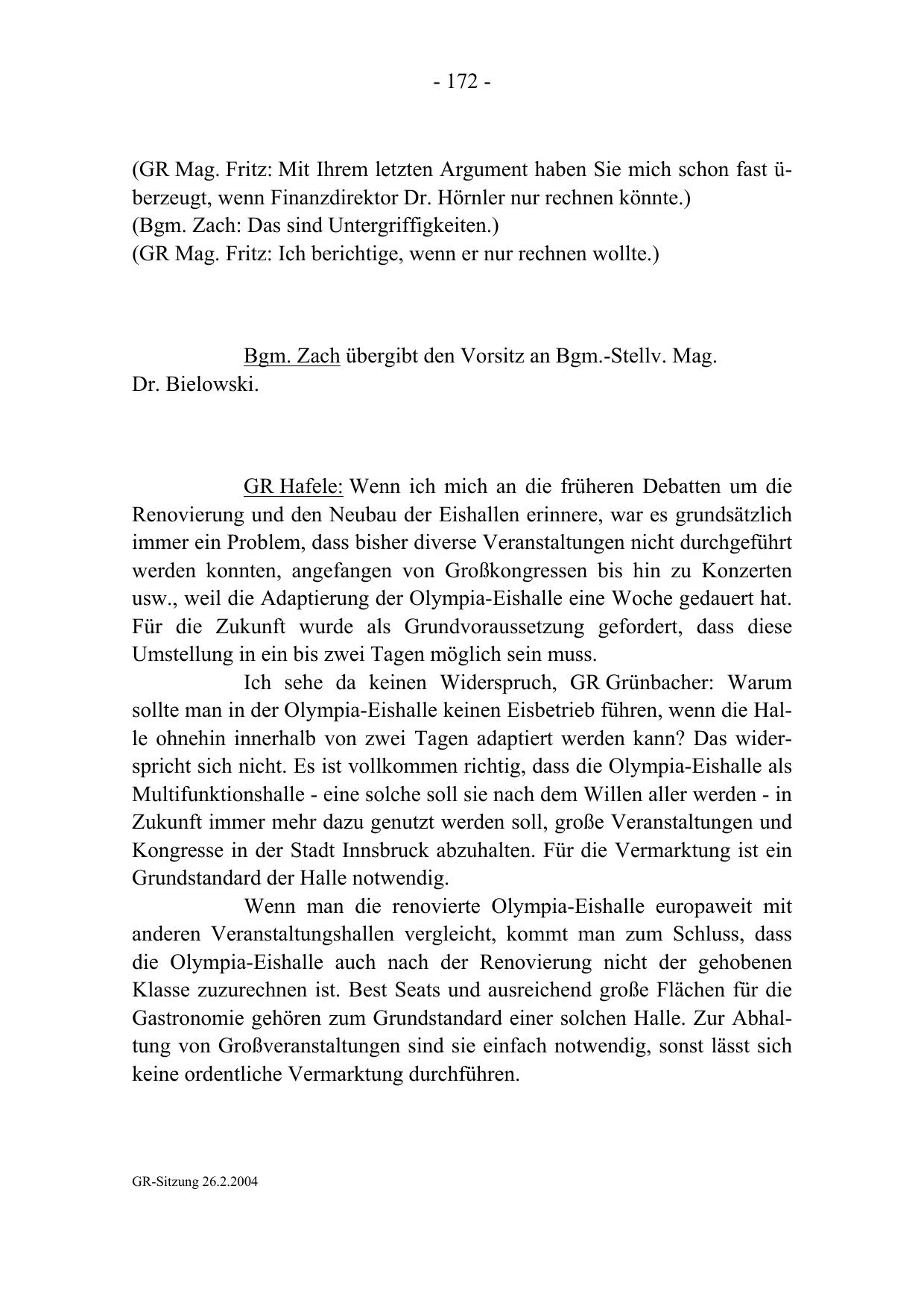 Bgm. Zach übergibt den Vorsitz an Bgm.-Stellv. Mag.