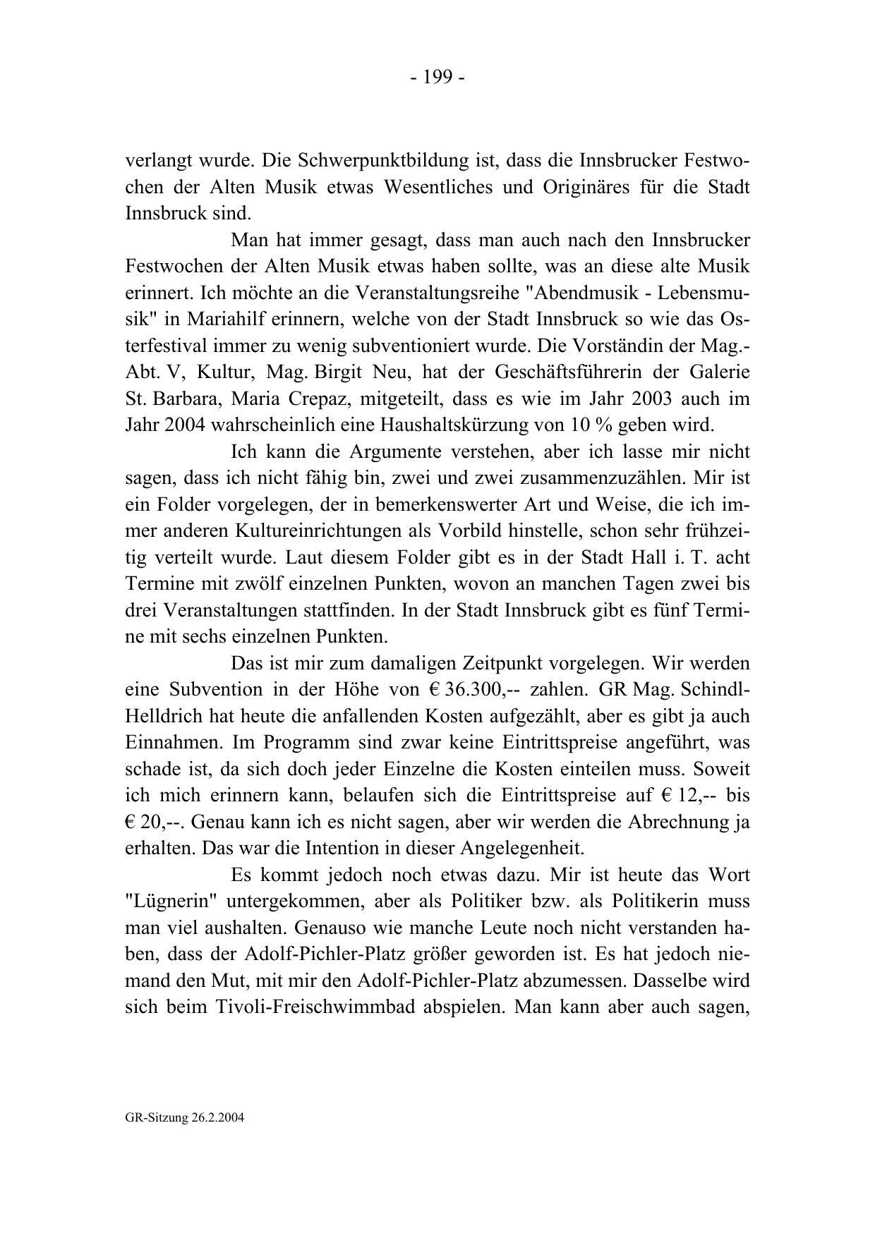man viel aushalten. Genauso wie manche Leute noch nicht verstanden haben, dass der Adolf-Pichler-Platz größer geworden ist. Es hat jedoch niemand den Mut, mit mir den Adolf-Pichler-Platz abzumessen. Dasselbe wird